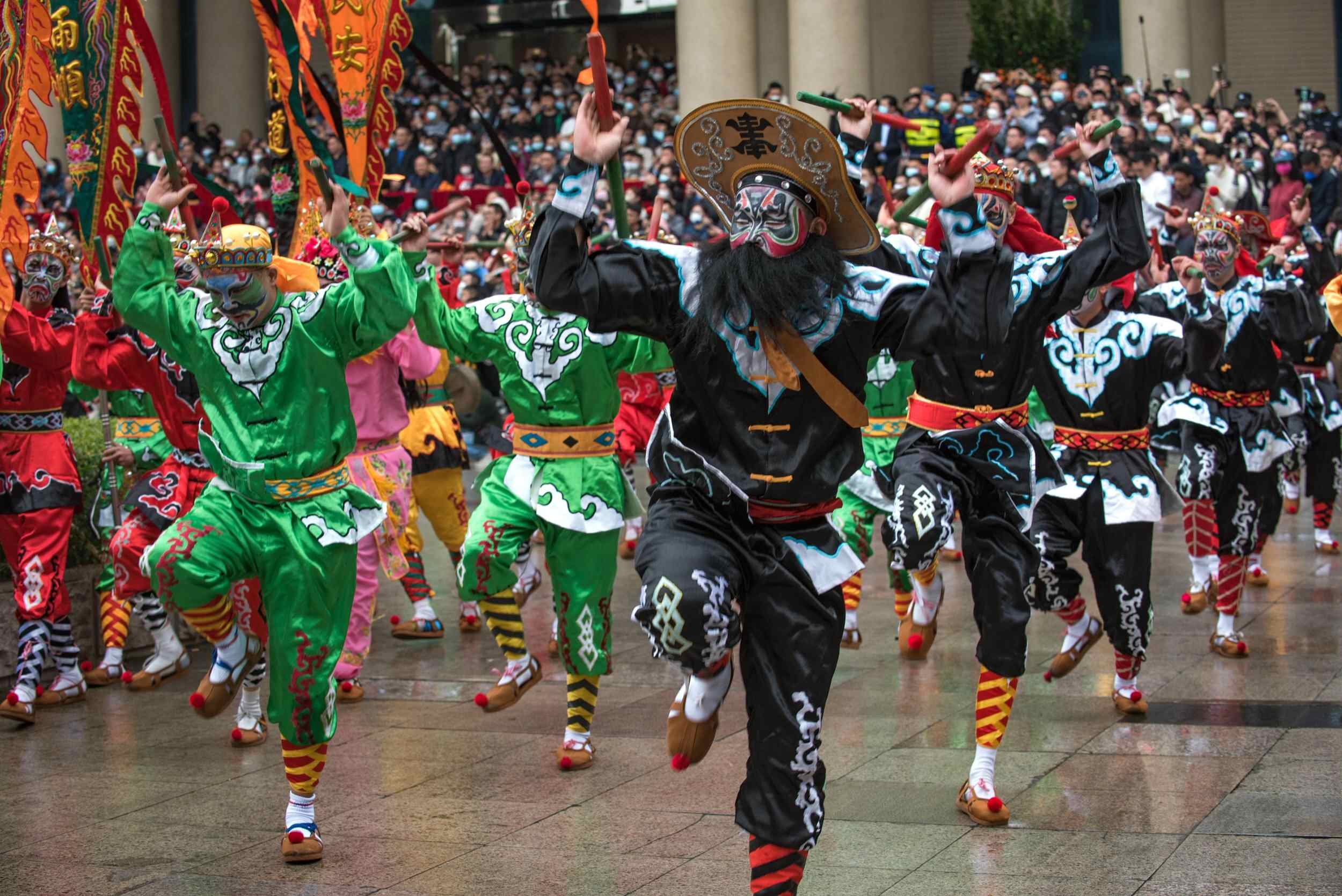 英歌舞是广东潮汕地区的传统民俗舞蹈,融汇戏剧、舞蹈、武术等成分,表演气势澎湃,展现中国文化的魅力,也是当地过年氛围感最强的传统活动之一。