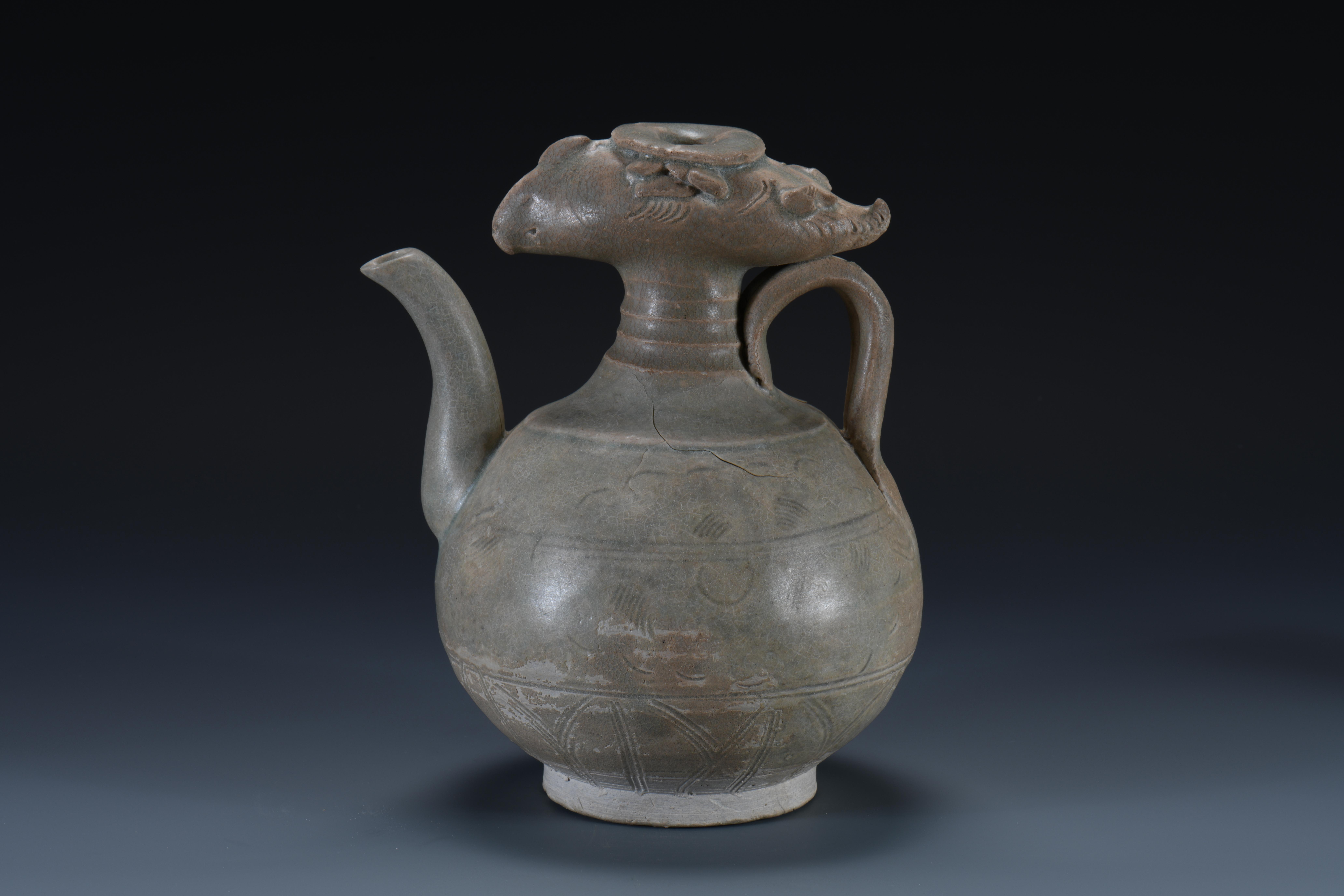 庆幸的是,近年来随着海外考古发掘出土或者沉船考古中越来越多西村窑瓷器的出现,人们对它的认识逐渐得到丰富。根据相关文献可知,“西村窑产品主要销往东南亚、日本等地,国内博物馆收藏得并不多。在东南亚一些国家古遗址出土的西村窑瓷器中,常见的便有青釉凤首壶等。”