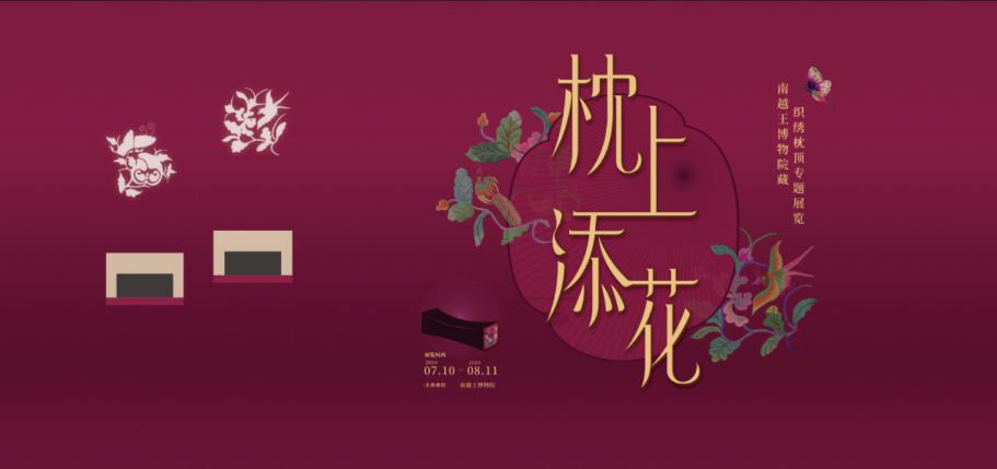 《枕上添花——南越王博物院藏织绣枕顶专题展览》展期为7月10日展至8月11日。
