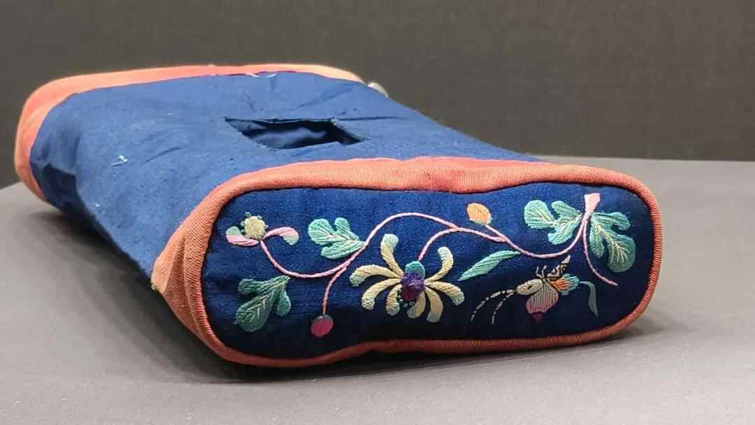 南越王博物院陈列展览部副主任、“枕上添花”策展人胡在强表示:“民间布枕流行于明清至20世纪中期,通常缝制成长方柱六面体形,为保持枕头长方形态的稳定,在制作中会使用多层且硬度较高的布片等材料来装裱枕头两端的顶面,并在上面刺绣各种纹饰图案,以达到装饰美化的效果,即织绣枕顶。”