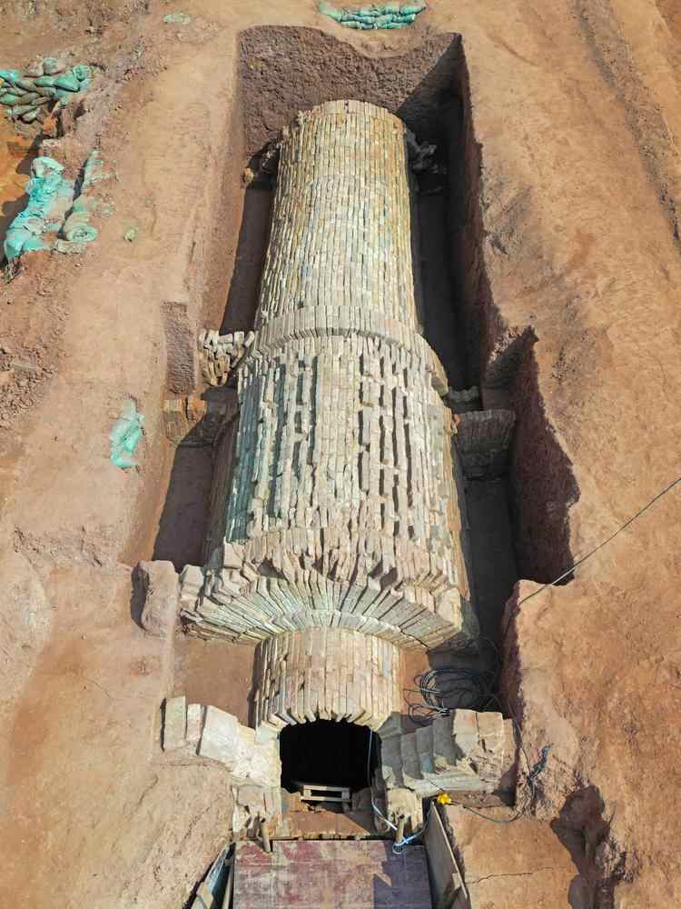 如今,麻鹰岗墓地内已然一片考古工地的景象,大大小小的墓坑四处分布。其中,编号为M130和M28的两座砖石墓,因为庞大的体量,显得尤为引人注目。