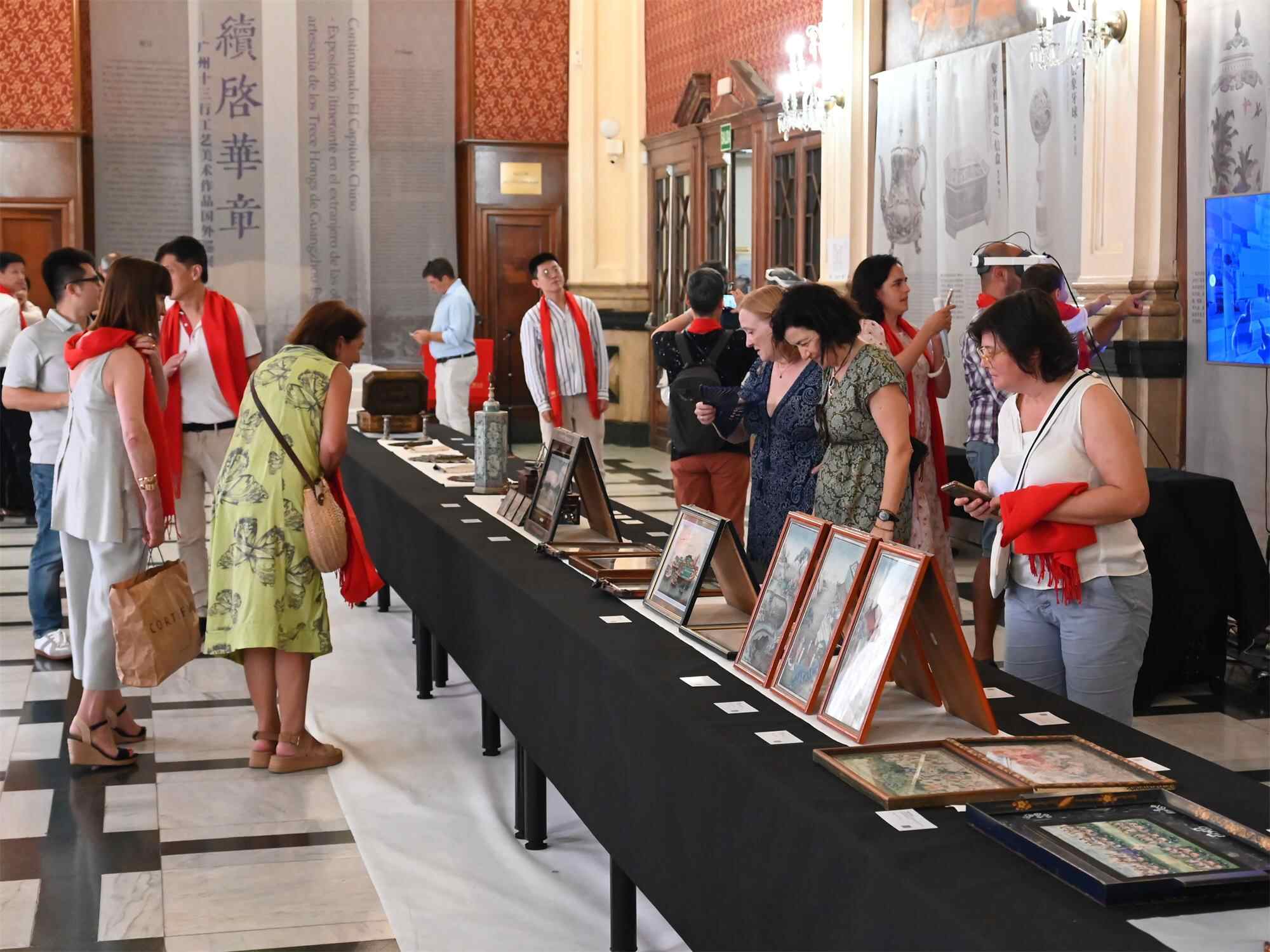 广州十三行工艺美术作品亮相西班牙,当地民众共享中国传统文化盛宴