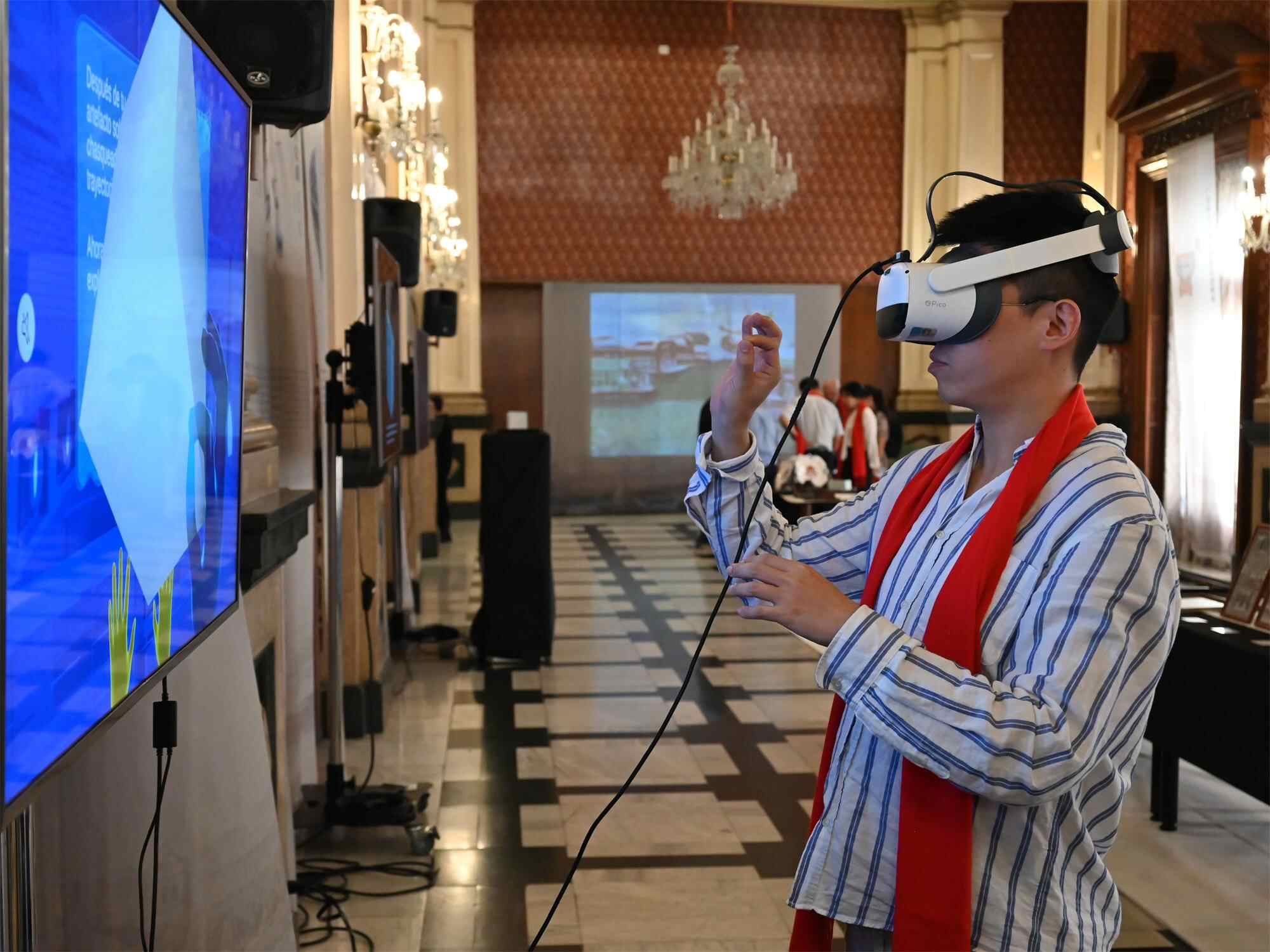 展览上,VR、AR交互的3D数字展品给西班牙民众带来优美动听的旋律和沉浸式体验,让他们全方位立体感受明清时期海上丝绸之路经济文化交流盛况,获得连连喝彩。