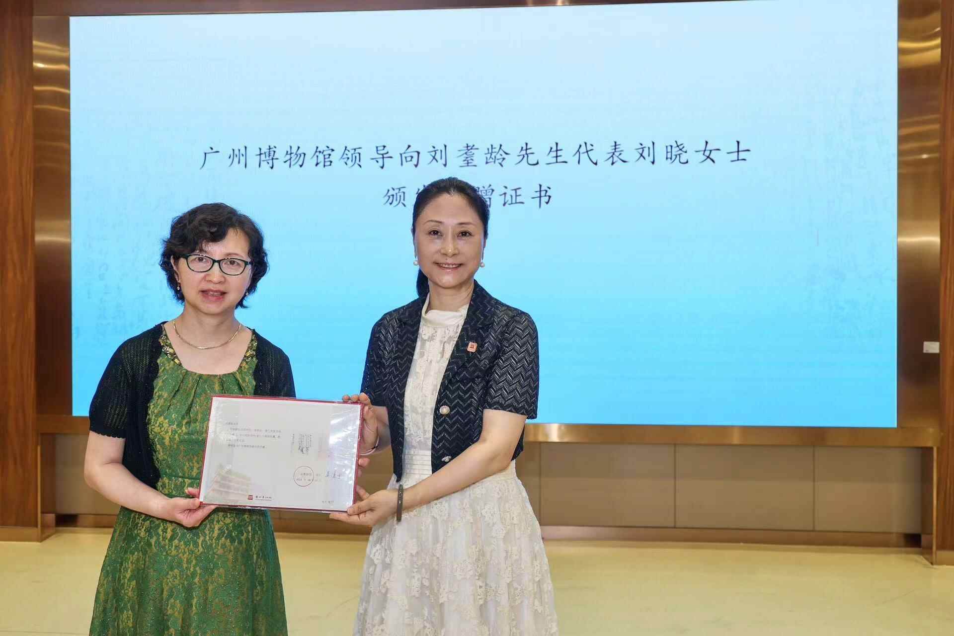 广博向刘耋龄先生代表刘晓女士颁发捐赠证书
