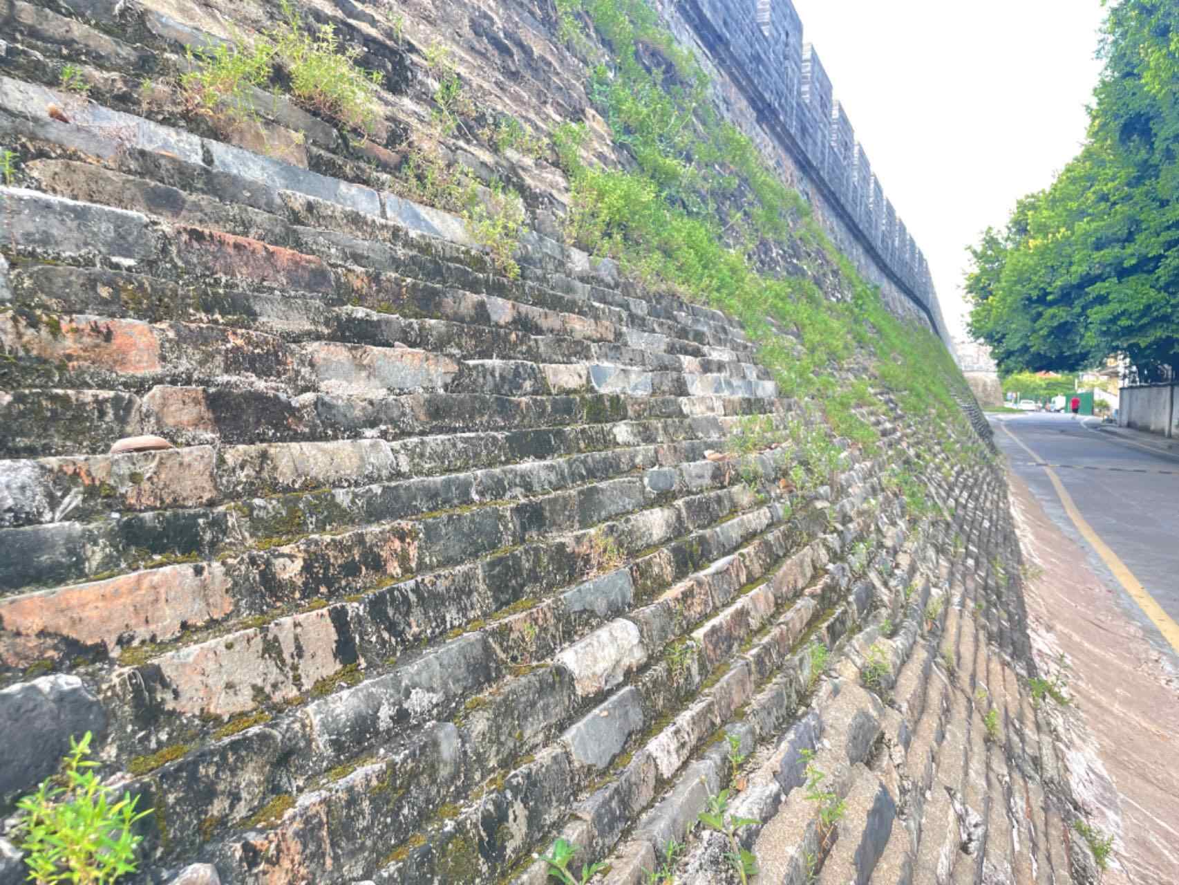 肇庆古城墙墙体坡度较大,主要目的是防洪