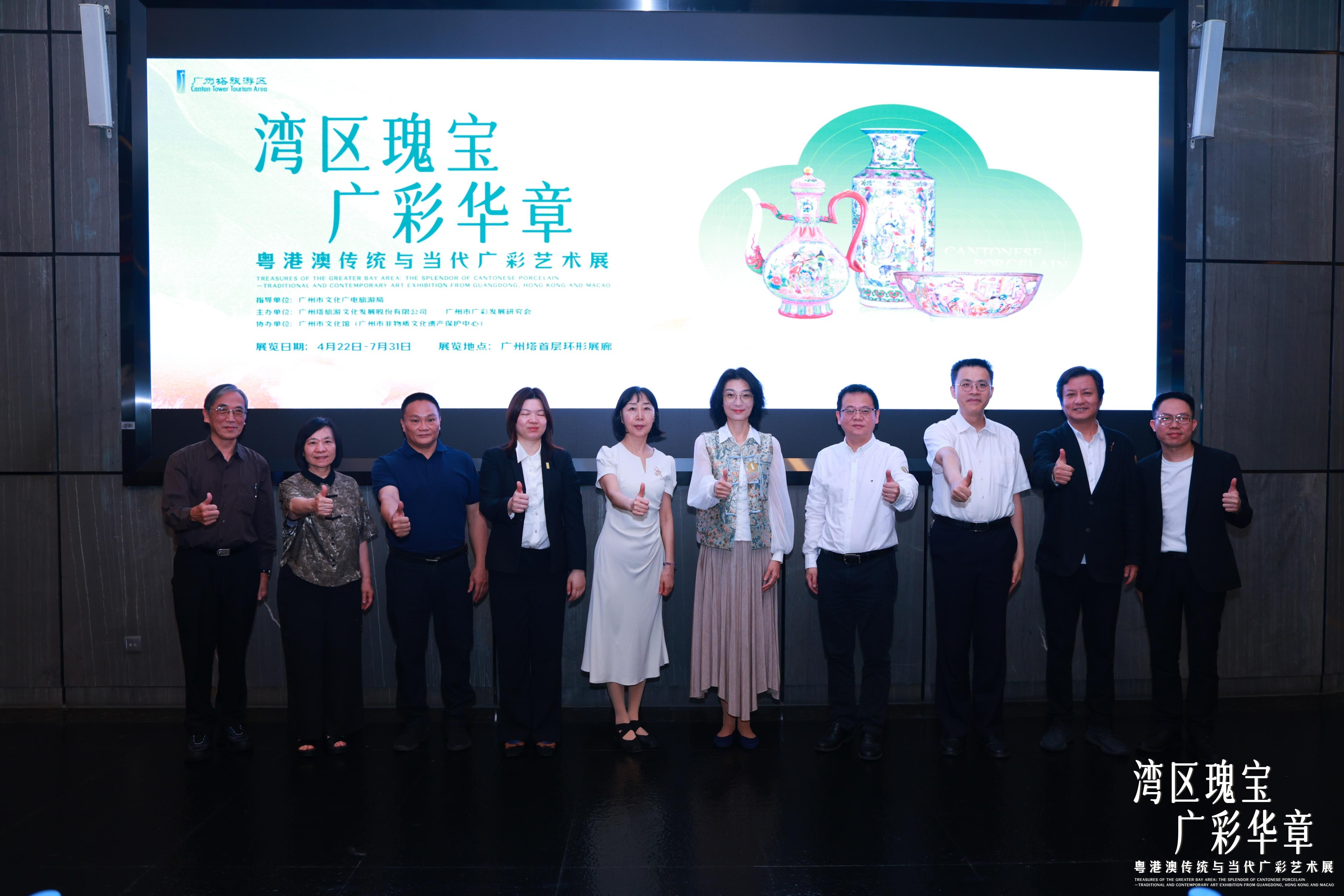 4月22日,“湾区瑰宝·广彩华章——粤港澳传统与当代广彩艺术展”在广州塔首层环形展廊启幕。