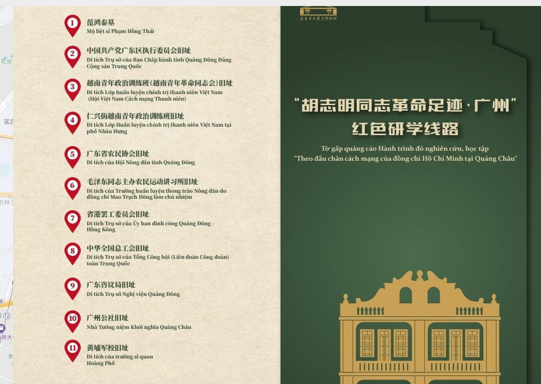 从中共广东区委旧址到越南青年政治训练班(越南青年革命同志会)旧址,从黄埔军校旧址到广州公社旧址,研学路线沿着胡志明同志及越南革命者的足迹,重温两党两国老一辈领导人的奋斗历程,见证和传承中越友好的“红色纽带”。
