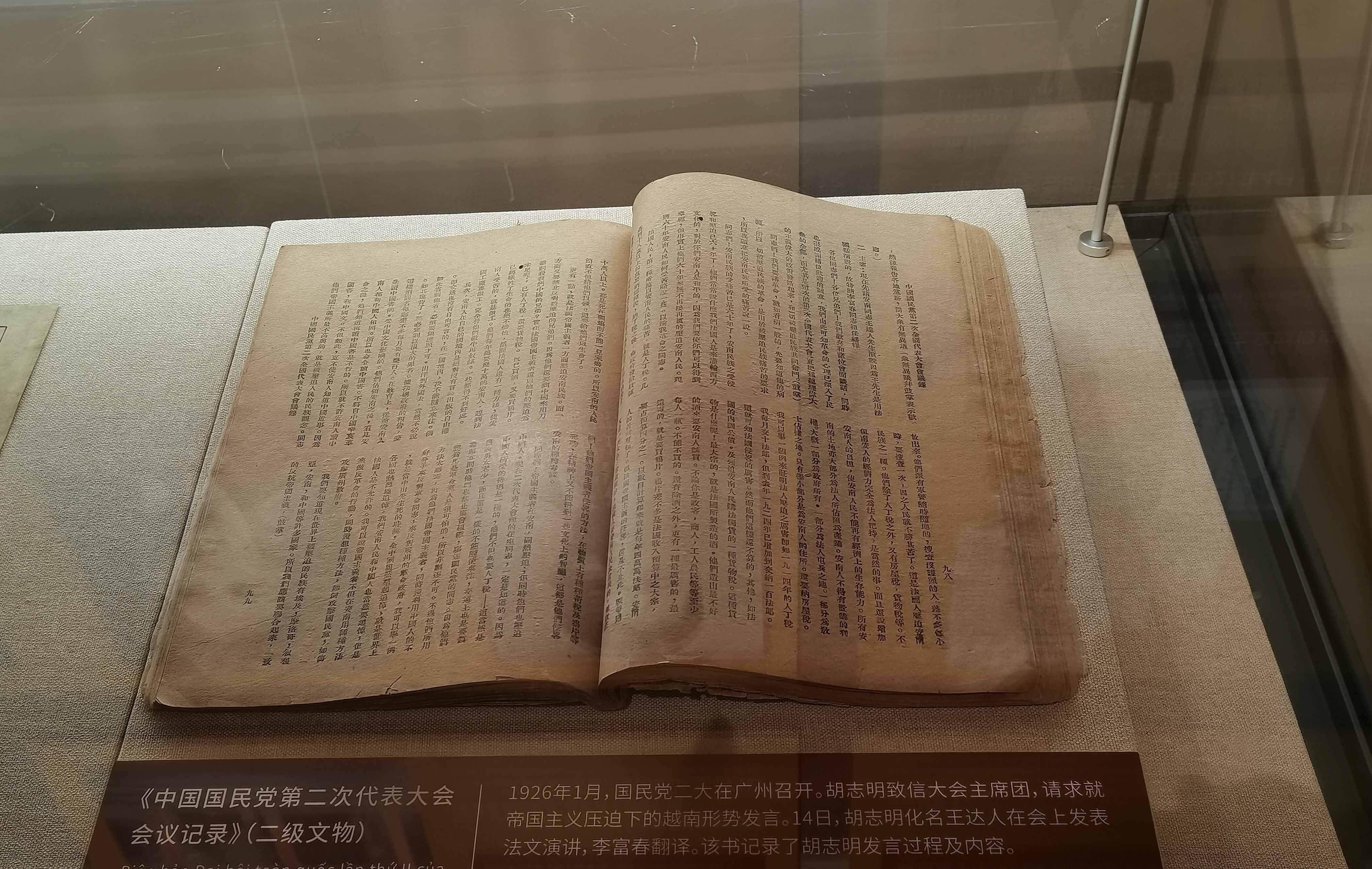 展品:记录胡志明化名王达人发表演讲的《中国国民党第二次代表大会会议记录》(黄宙辉 摄)