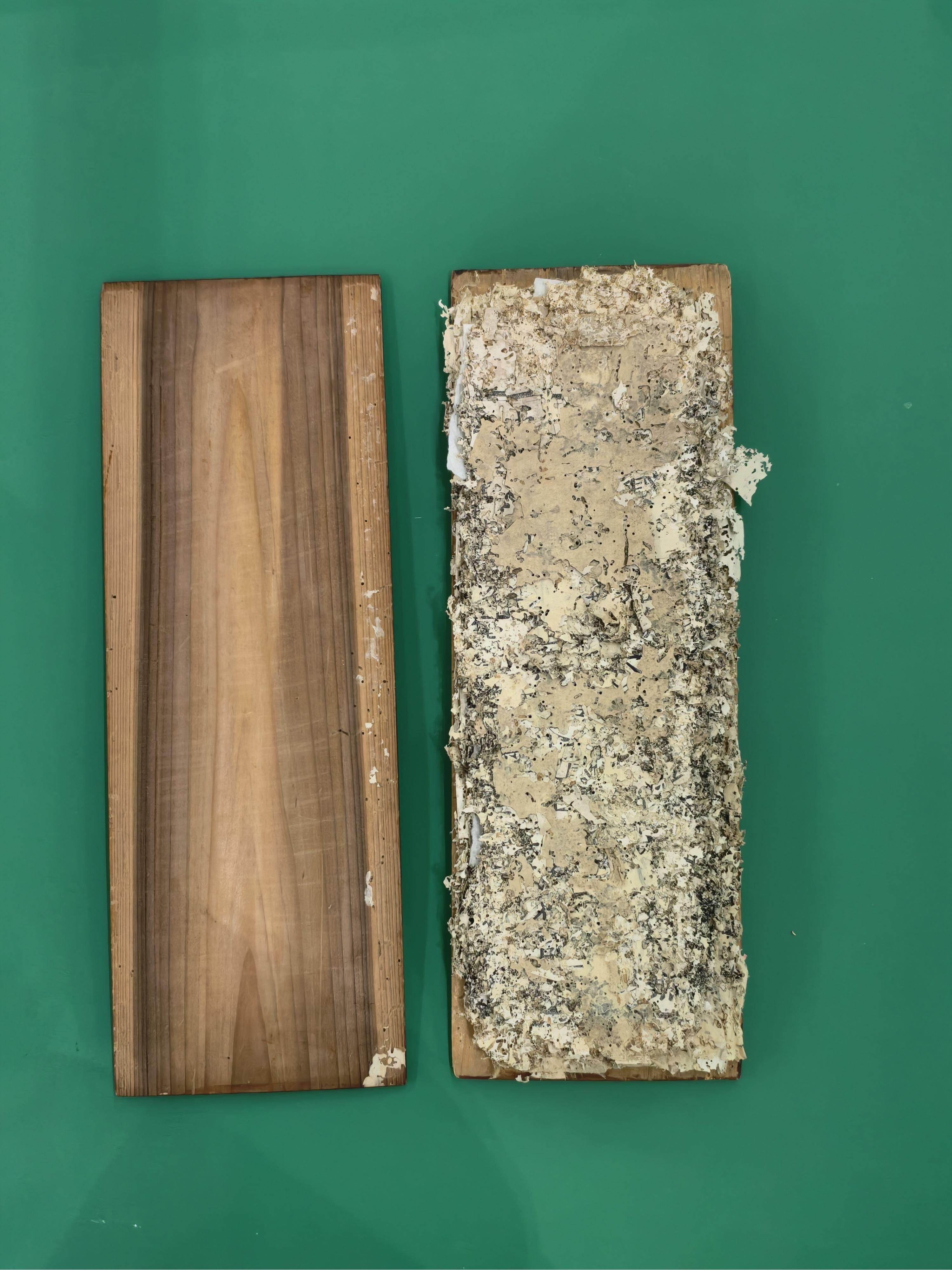 导师们介绍,经卷因民国时期的不当修复,使用不匹配的皮纸和过度托裱而造成大面积虫蛀损害。结合第一期研修班的经验,本期研修班采用先剥离旧有修复材料再进行科学修复的方法。
