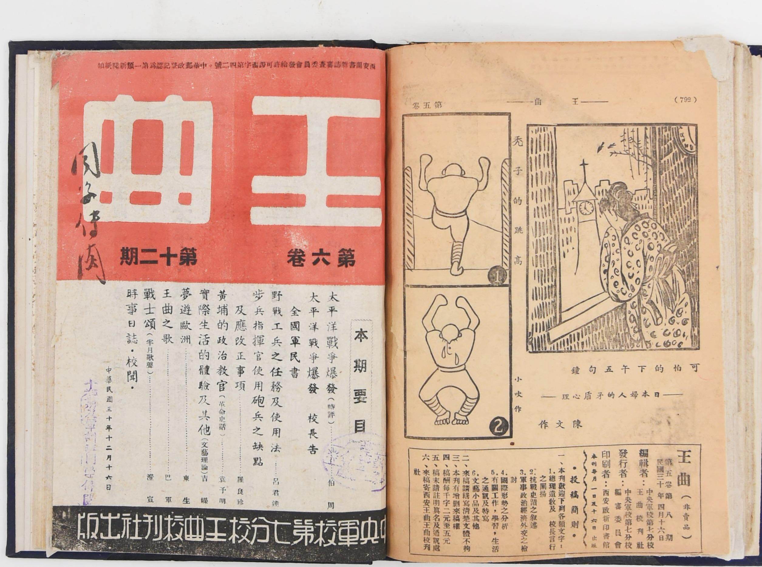 展览现场展出1940年黄埔军校七分校印行的《王曲》杂志合订本,其中有一篇题为《黄埔军校的政治教官》的文章,作者为袁予明。