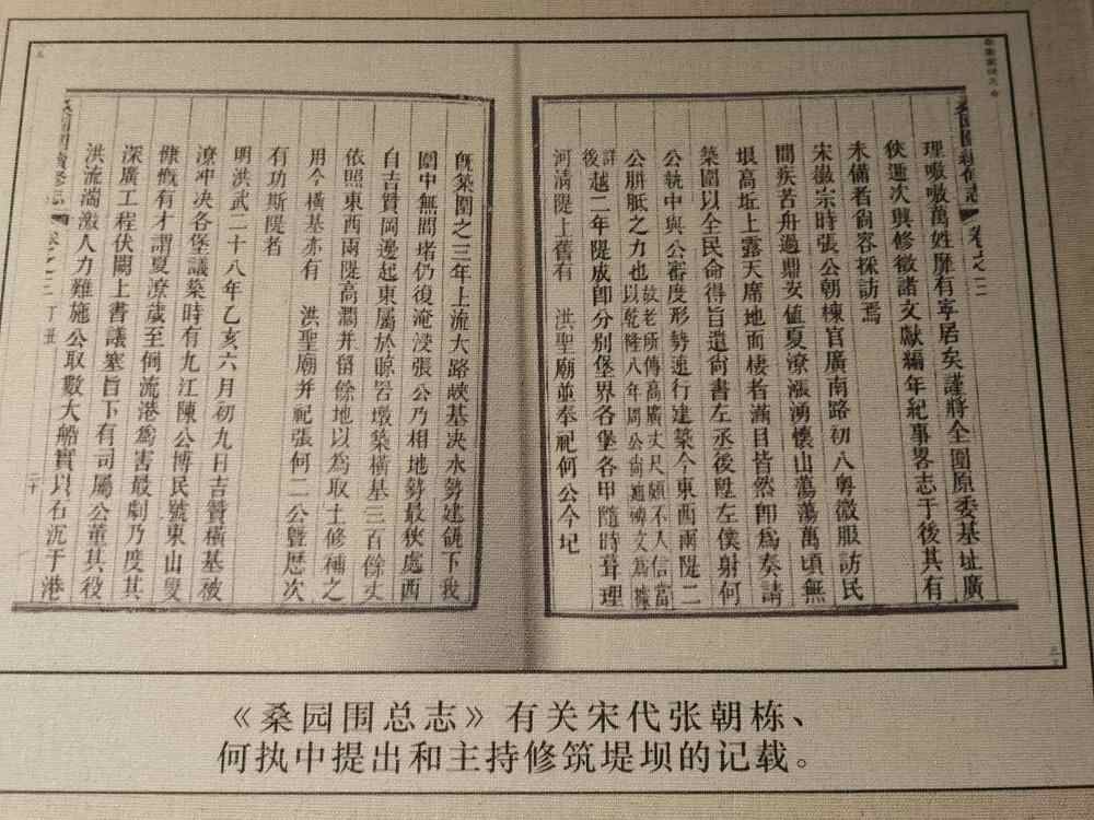 根据史料记载,北宋徽宗崇宁、大观年间(1102年 -1110年),广南路宪张朝栋路过南海九江,适遇洪水暴发,亲眼目睹了这次洪水给当地居民造成的巨大危害。他“抵省后,即谕县传集里民,筹建基堤,以防水患”,并上疏请示,得到批准。