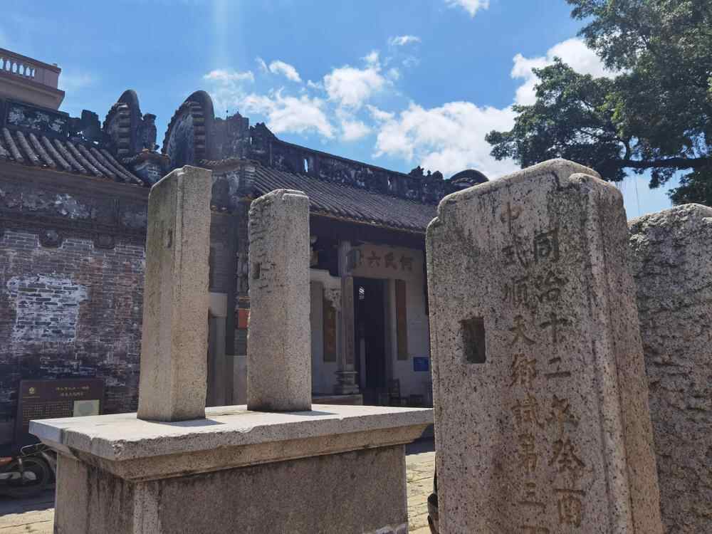 村中的何氏六世祖祠是一座典型的清代岭南祠堂,现在是广东省级文物保护单位。祠堂前竖立着众多旗杆夹石,彰显该村文脉兴旺。