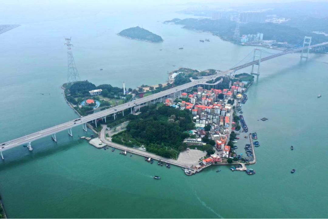 妈屿岛航拍 作为潮汕门户、海防重地,历史上,妈屿一直是船只进入沙汕头(汕头旧称)的必经之路。独特优越的地理位置,是选择在妈屿岛设立海关的重要原因。 清咸丰三年(1853),粤海关在妈屿岛设立潮州新关,也称“常关”。清咸丰十年(1860)汕头开埠后,清政府在岛西侧设立潮海关,是汕头海关的前身。1863年之后,随着潮海关迁入汕头埠内,妈屿岛逐渐荒凉冷清。直至20世纪30年代后,妈屿岛才重新聚拢人气,随着一些村民陆续从陆上搬迁到妈屿捕鱼、投亲定居,逐渐形成了如今的妈屿村。 潮海关税务司旧址 妈屿岛远望像一匹泅渡的马,最初的名字是“马屿”。后因妈祖文化在当地盛行,此岛逐渐被称为妈屿岛。 在这个“弹丸之岛”上,有两座妈祖庙,当地人称为新、老妈祖庙。天后古庙(老庙)始建于元代,天后古庙(新庙)始建于清咸丰八年(1858),两者均坐东北向西南,为三进连结建筑格局,石雕、木雕、嵌瓷工艺精美,极具潮汕古建筑风格。 天后古庙(老庙) 天后古庙(新庙) 妈屿岛还有一个别称叫“放鸡山”。传说当地靠海而生的人们为了祈求出海航行平安,航行途经妈屿岛的时候,都会携带活鸡上岸来祭拜妈祖。放生的活鸡在岛上繁衍生息,“放鸡山”也因此而得名。在老妈祖庙前,一座极具特色的“雄鸡报晓”潮汕嵌瓷雕塑,生动地描绘出“放鸡山”上雄鸡报晓的画面。 “雄鸡报晓”(来源:网络) 漫步海岛,看波涛翻滚,海天相连,山水互映,景色怡人。一座长达2500米的汕头海湾大桥,跨越汕头港进出海航道,妈屿岛如同海湾大桥的一个巨大桥墩,与海湾大桥融为一体,形成了一道新的壮丽景观。 汕头海湾大桥 妈屿岛深厚的历史底蕴,为这里带来宝贵的文旅资源。岛上留存的龙王宫和基督教堂旧址,似乎在述说着往昔中西文化在这里的碰撞。1954年守岛部队开凿的“大军井”和时任广东省委第一书记陶铸1962年登岛倡建的观海亭(陶铸亭),是军民和谐的见证。四处可见的墙画,则为小岛平添一抹浪漫。 大军井 民居彩绘墙 随着岛内生态修复项目的稳步推进,历史文化遗址的保育活化,综合文旅空间的相继落地,妈屿岛正在成为一个新的旅游胜地。