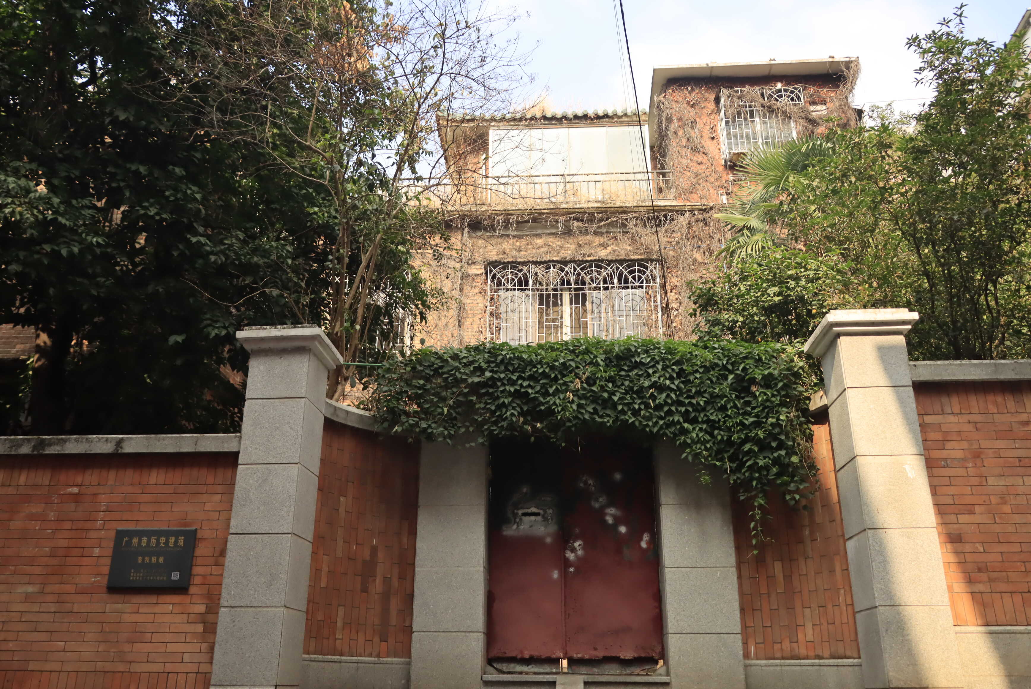 穿过东山口静谧的小巷,行至启明二马路,一座两层红砖曲尺形建筑跃入眼帘,庭院里的两棵桂花树散发着幽香,大门左侧外墙上悬挂的铭牌“广州市历史建筑:秦牧旧居”。不时有路人在此停留驻足,“秦牧?是特别有名的那位散文大家吗?”