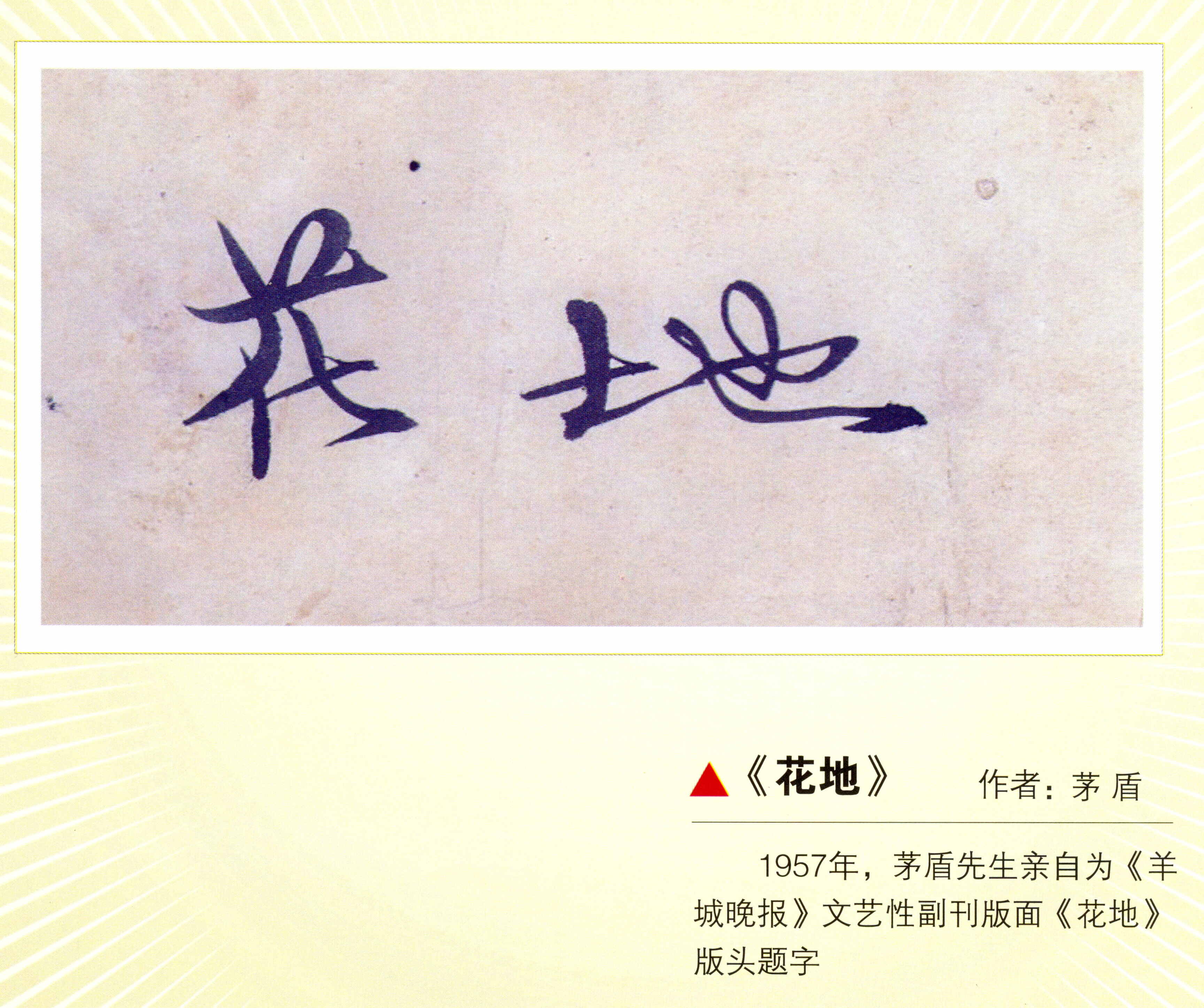 1957年,茅盾先生亲自为《羊城晚报》文艺副刊《花地》的版头题字