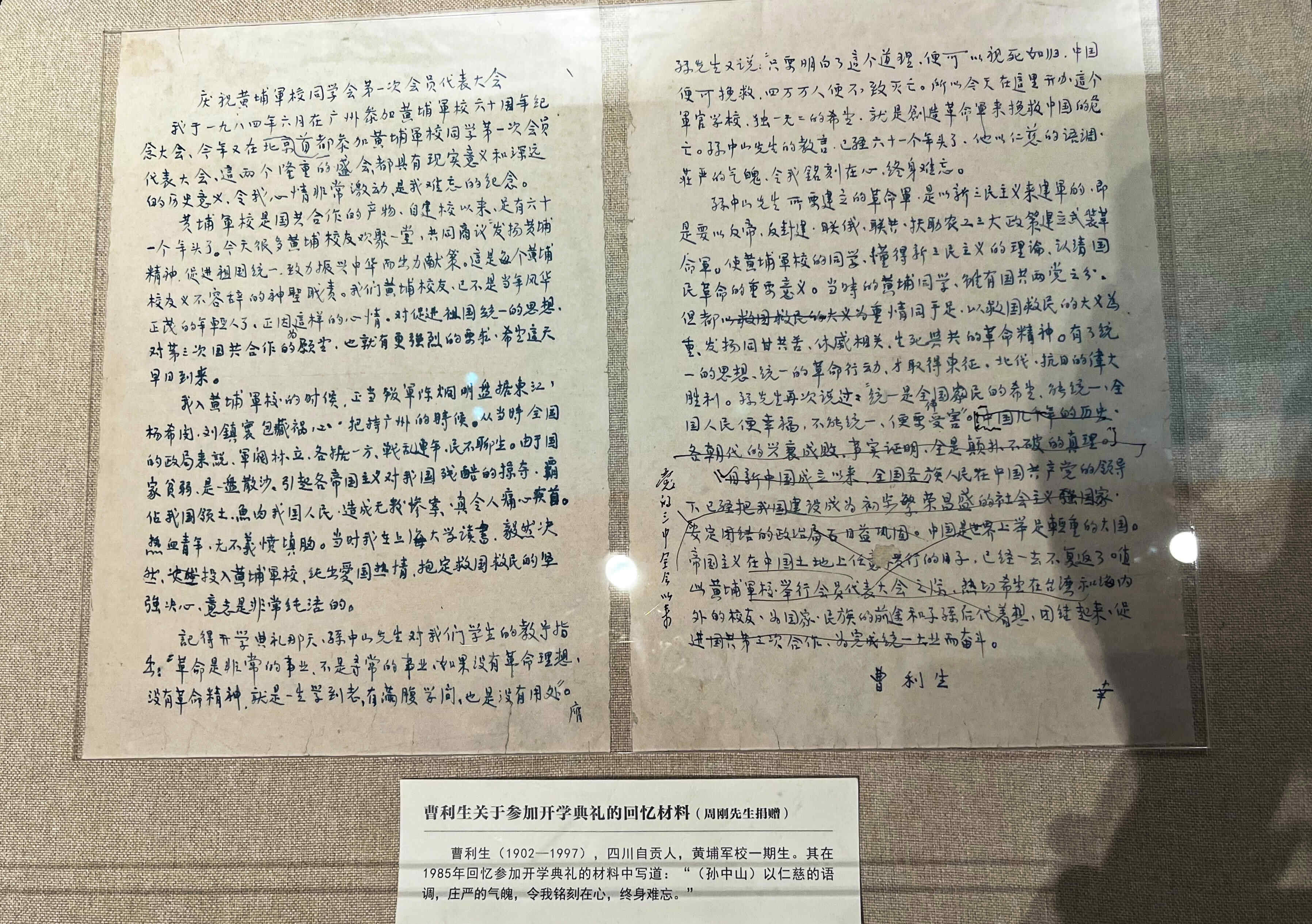 1985年,曹利生参加了在北京举办的庆祝黄埔军校同学会第一次会员代表大会,并在手稿里回忆了61年前黄埔军校的开学典礼: