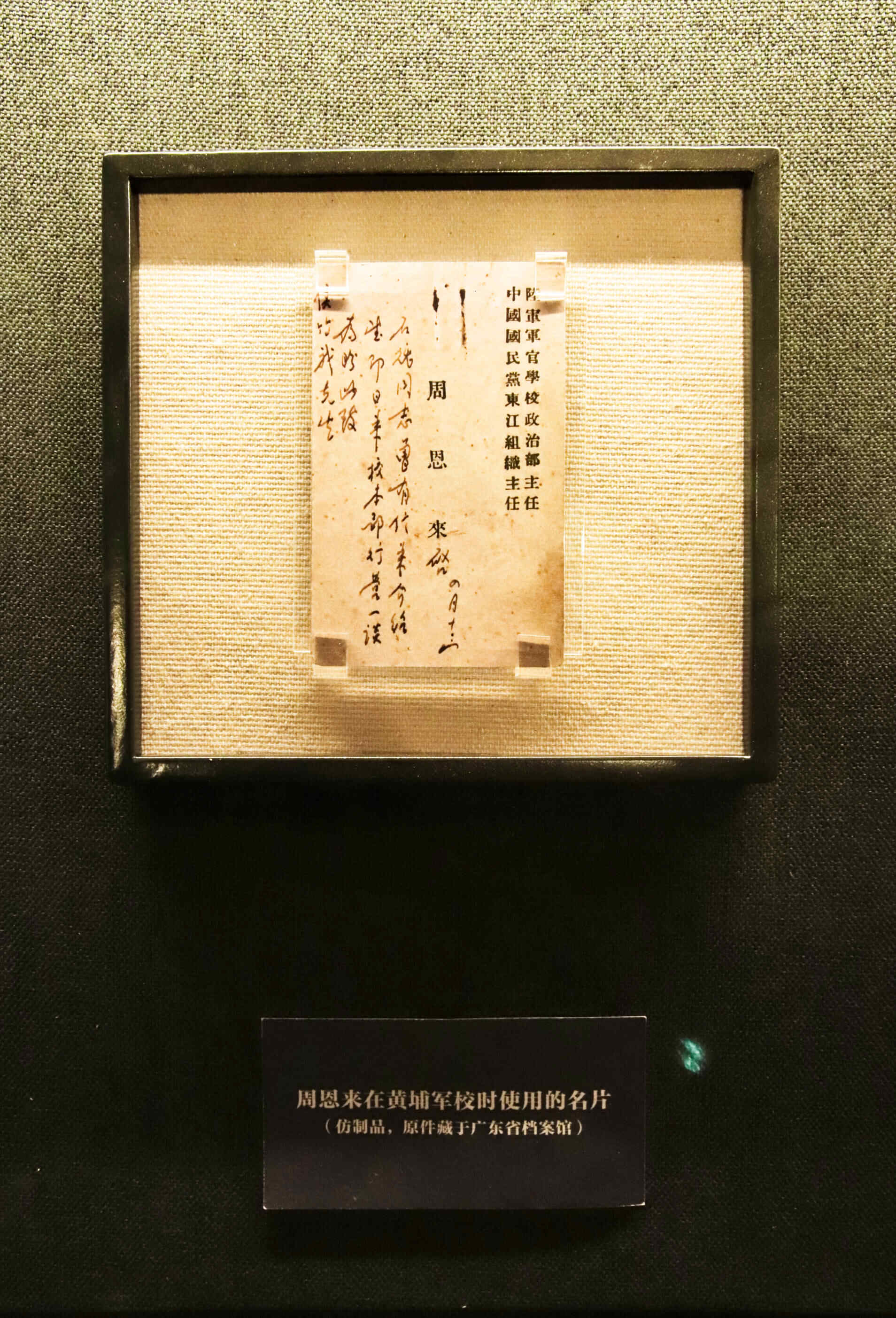 周恩来在黄埔军校时使用的名片