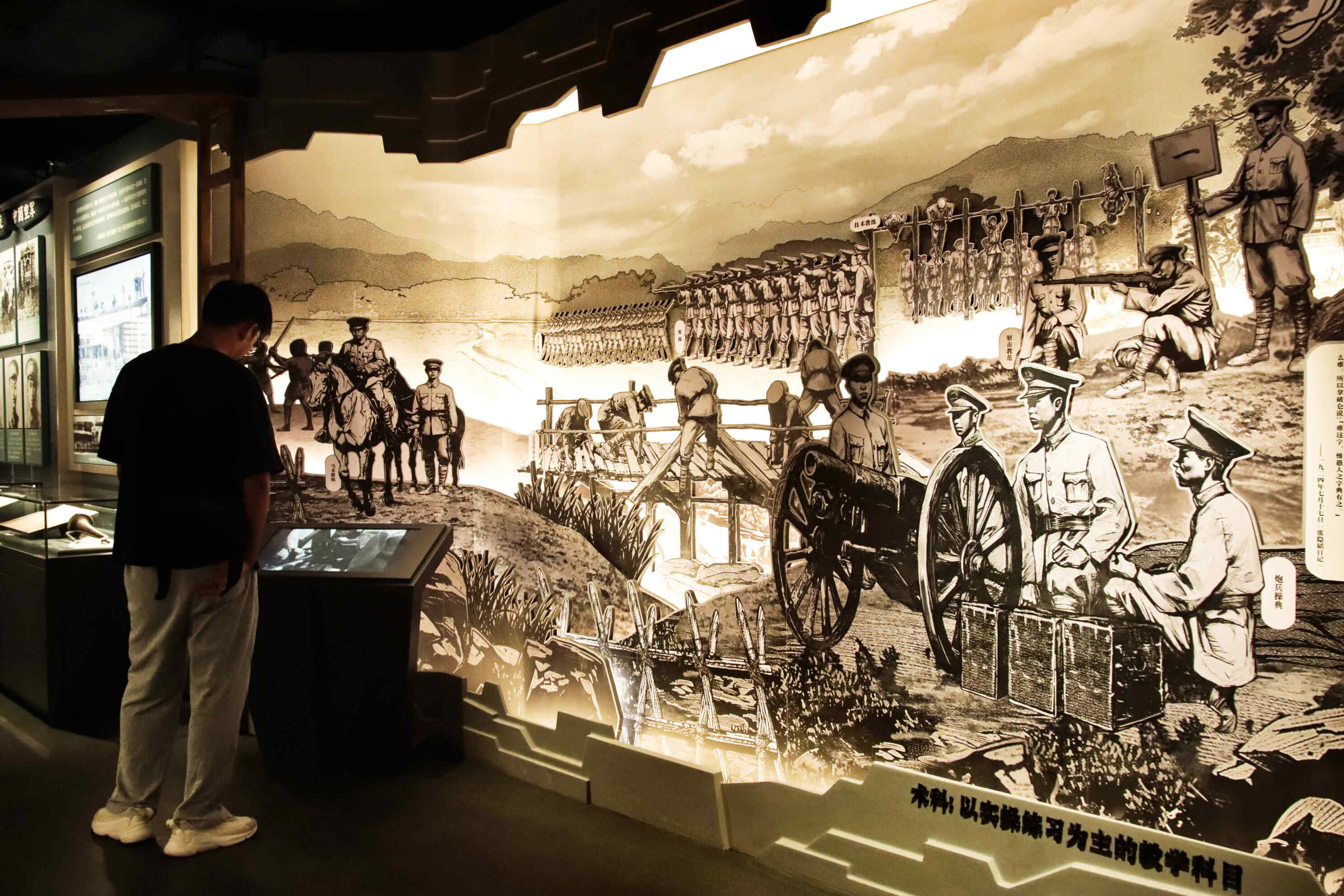 目前,校本部复原了政治部、官长饭厅(大会议室)、教授部、顾问室、入伍生部、自习室、学生宿舍、教练部、战术总教官室等二十余个场景空间。100年前,军校学生们正是在这里接受教育,努力学习。