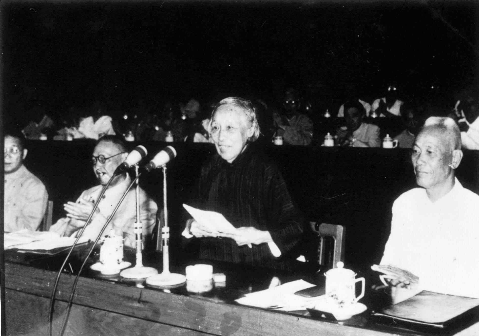 1960年8月,何香凝在民革中央四届二次全会扩大会议上当选民革中央主席(廖仲恺何香凝纪念馆供图)