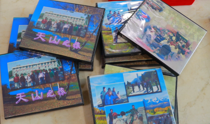 廖加战拍摄的重走独库公路视频光盘 羊城晚报记者 何文涛 摄