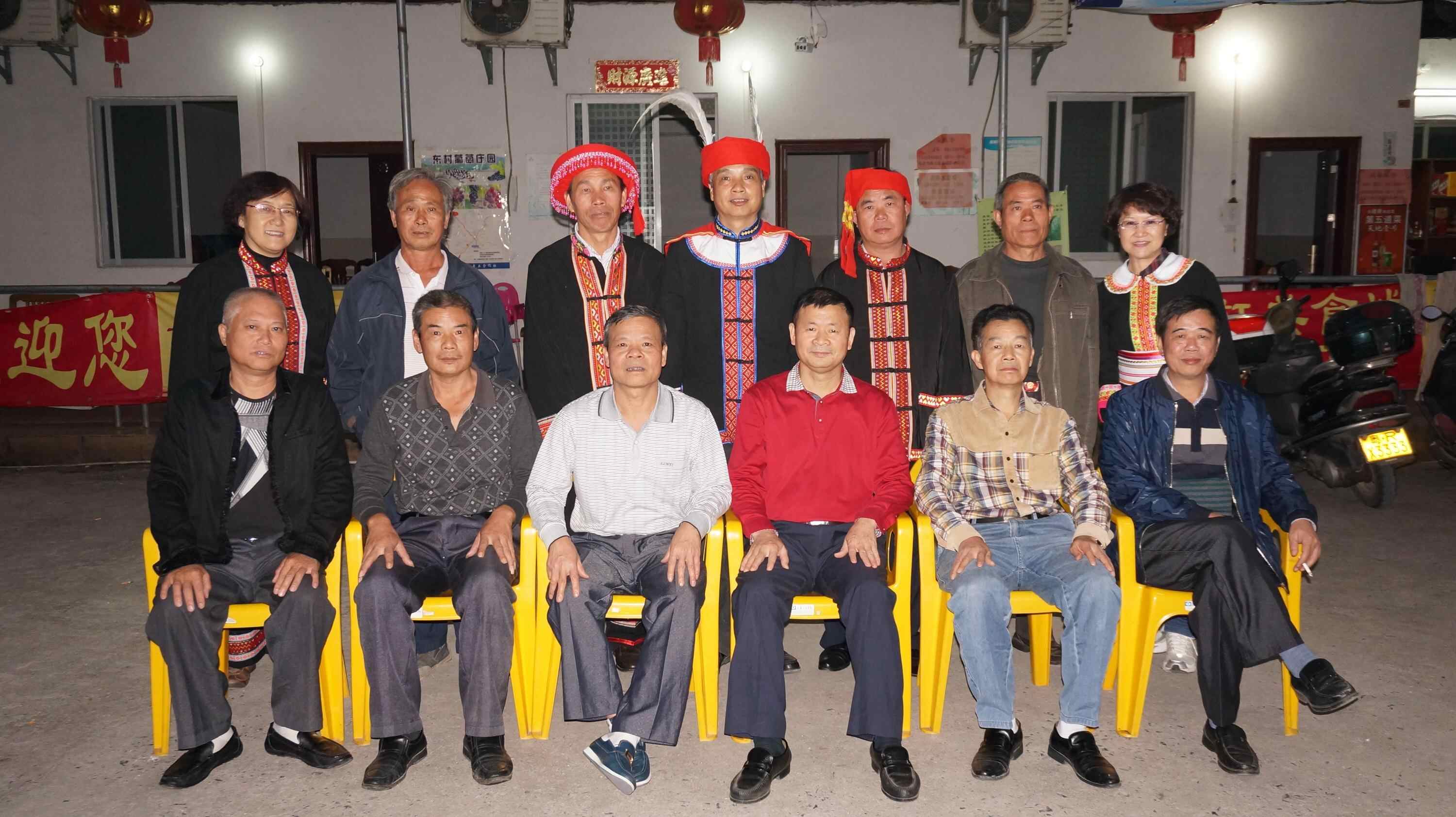穿上瑶族服装的钟晓阳(后排左)、张力方(后排右)与部分连州、连南老兵