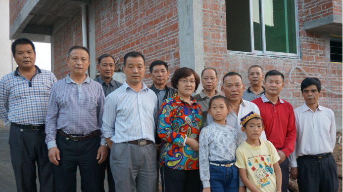 廖加战(前排右二)、钟晓阳(前排右四)与广东战友一道,在陈卫星(前排右三)在建新屋前合影 图/《筑路天山的南粤老兵画册》