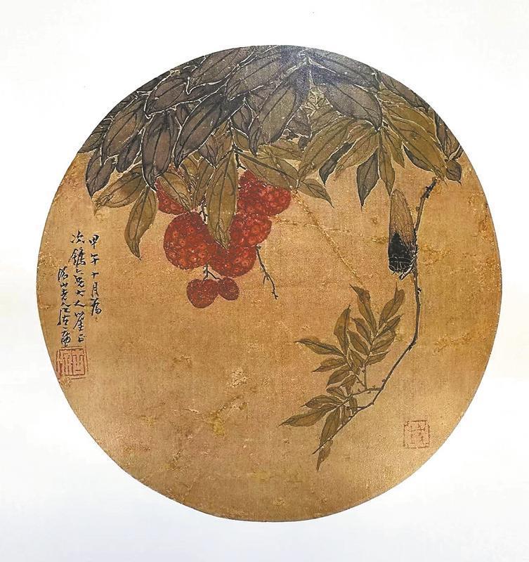 居廉《一本万利团扇》,1894年作,绢本设色,直径24厘米。居廉对岭南画派的影响十分深远,岭南画派创始人高剑父、陈树人均师从于他。图片拍自《居巢居廉画集》,广东省东莞市博物馆编,文物出版社。 潘玮倩 摄