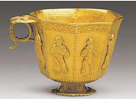 众所周知,何家村窖藏出土的金银器等级较高,可能与宫廷或官府有关。而我们对比发现,黑石号出水的金银器如金手镯、八棱金杯等,在工艺和风格上与西安何家村窖藏的金银器有明显关联,质量难分伯仲,这表明黑石号出水金银器也具有较高水准。
