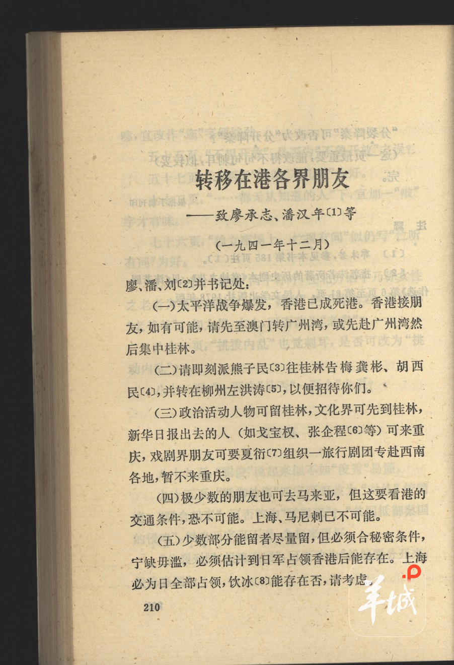 1941年12月19日,周恩来致电廖承志、潘汉年等人,要求迅速转移滞留在香港的各界友人