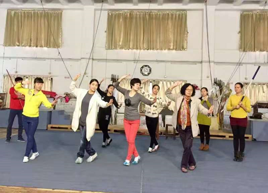 姚璇秋应邀到汕头戏曲学校为学生指导身段动作