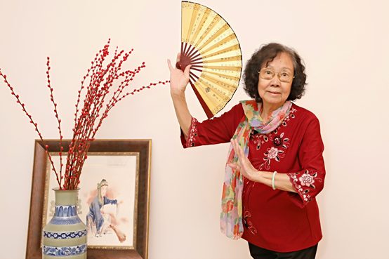 由于年事已高,姚璇秋耳朵已不太好使,谈话需提高音量,腿脚也不太灵便。但只要潮剧音乐一响,她马上就可以进入状态,跟着鼓点抚扇走步,轻吟低唱。