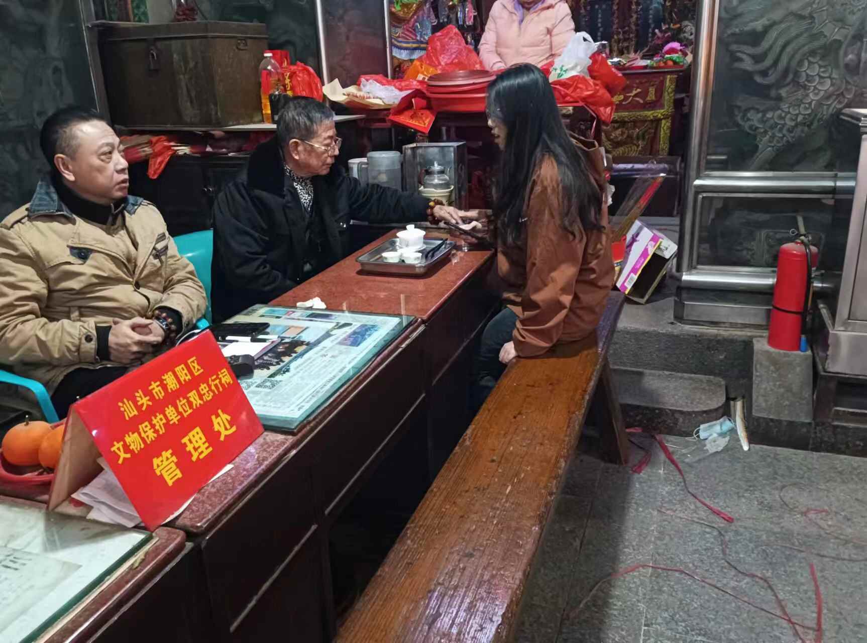 祠堂修缮过程中,朱雪梅在询问村里的老年人