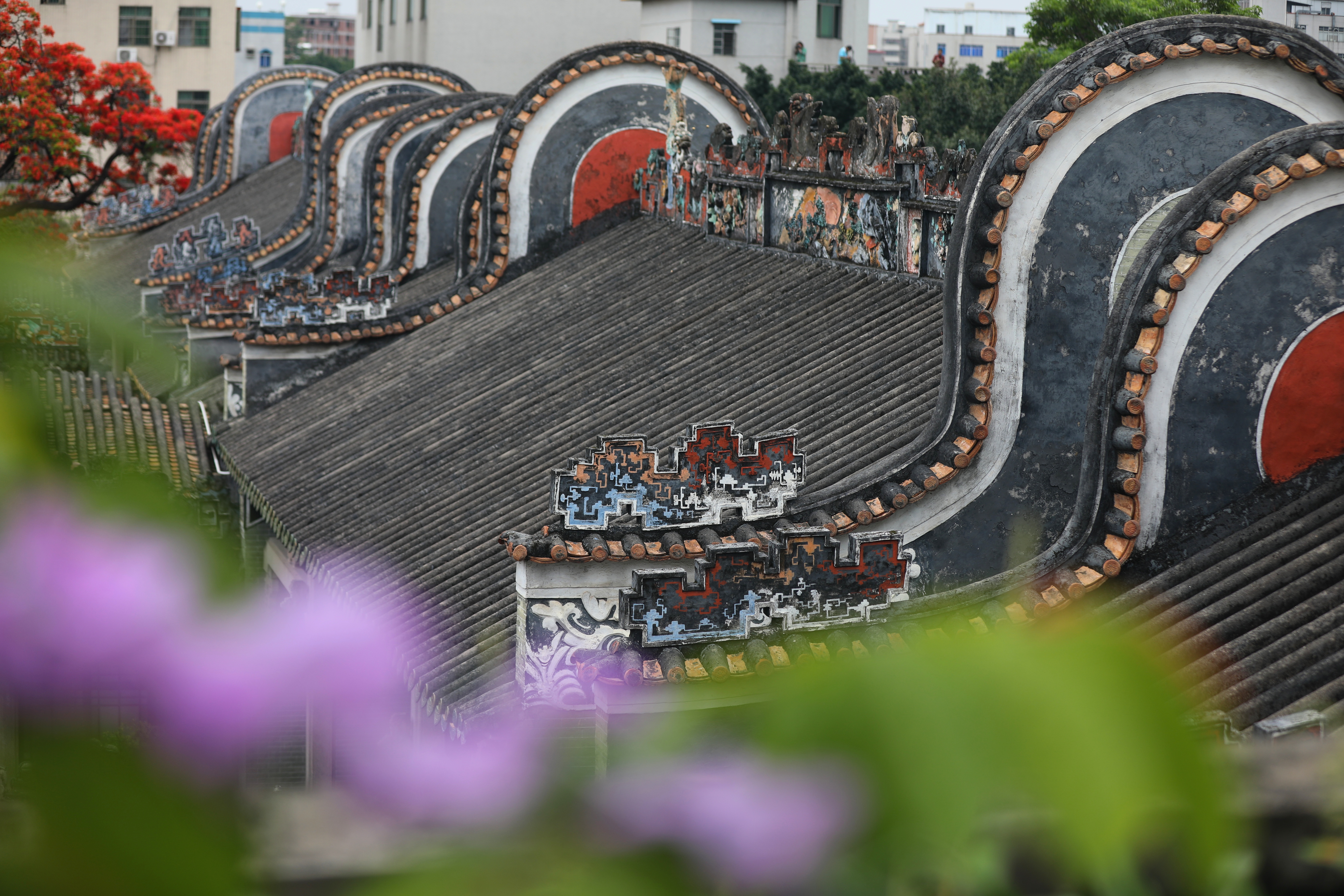 夏日繁花的映衬下,白云区周氏大宗祠增加了一分美感 黄建隽 摄