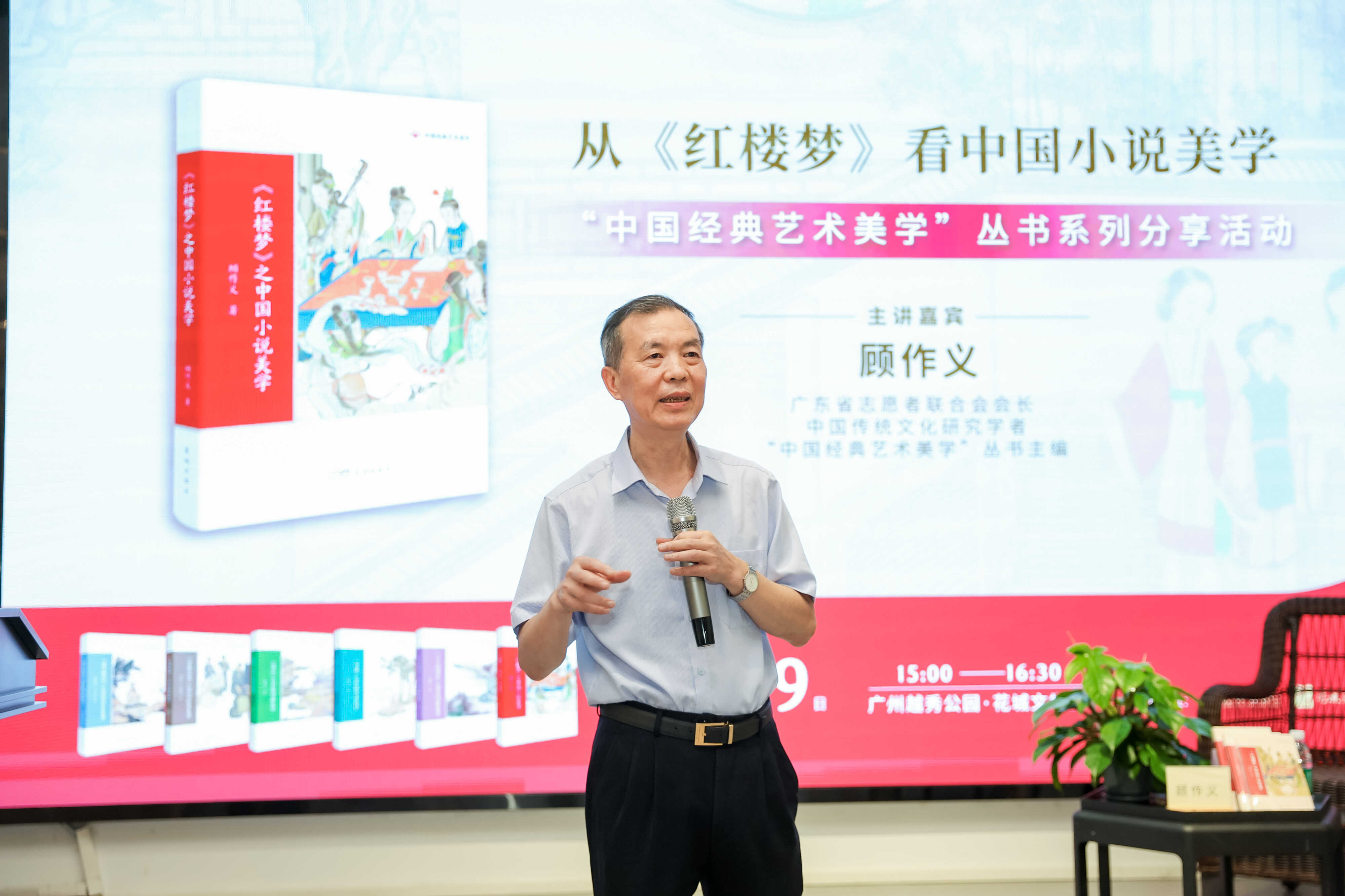 6月29日,“中国经典艺术美学”丛书主编、广东省志愿者联合会会长、中国传统文化研究学者顾作义做客花城文学院,围绕丛书分册《〈红楼梦〉之中国小说美学》,从书名、思想、形象、结构、格调等八方面,深入阐述了中国小说美学的意涵。