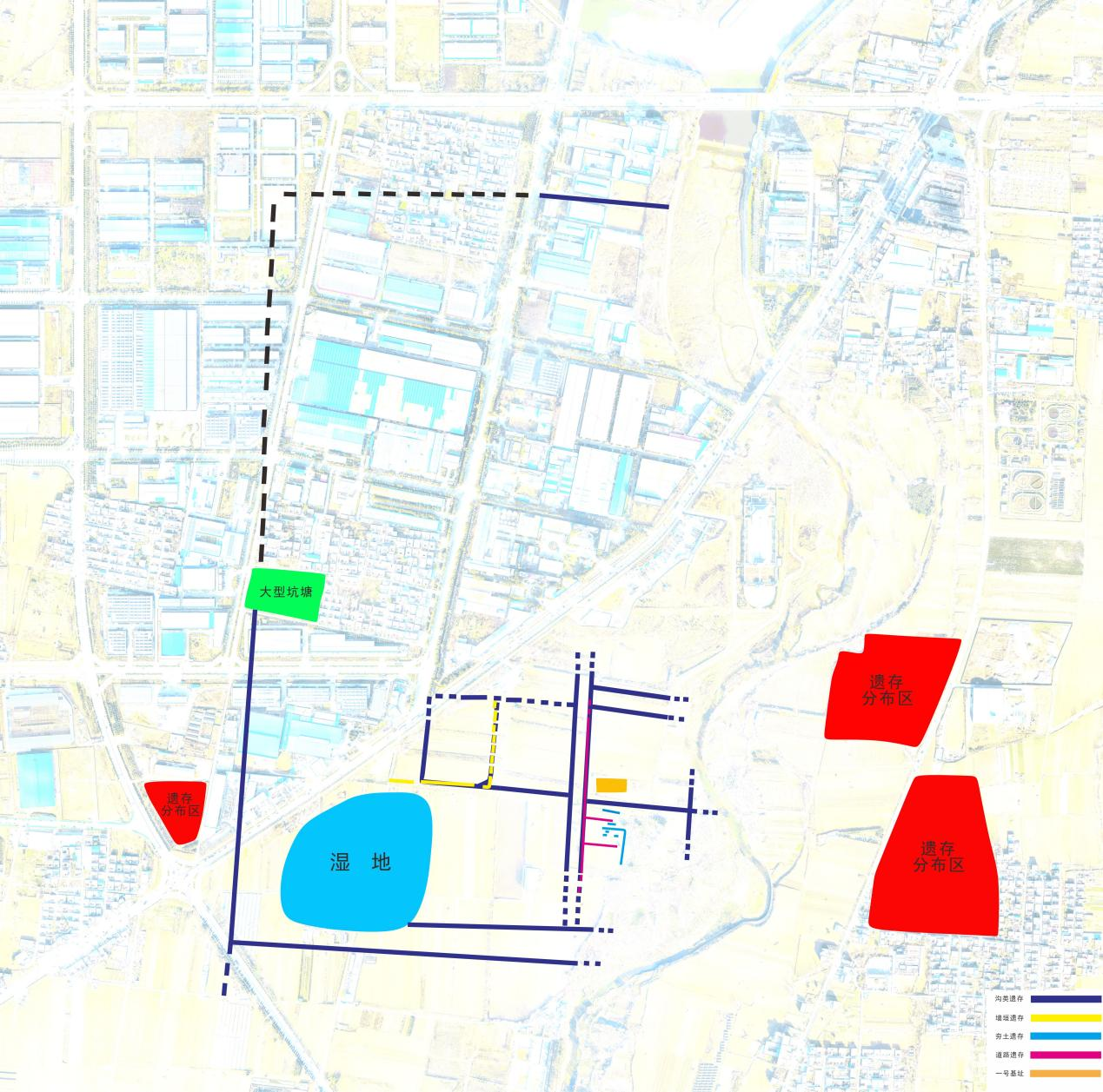 考古发现有大面积灰黑土堆积,包含有较多碳粒、烧土颗粒和红烧土块,周围出土有铜炼渣与炉壁等冶铜遗存,预示着存在冶铸青铜器手工业的可能性。发现道路4条,部分区域保留有明确车辙痕迹,其间距与二里头遗址的车辙间距相差不大。