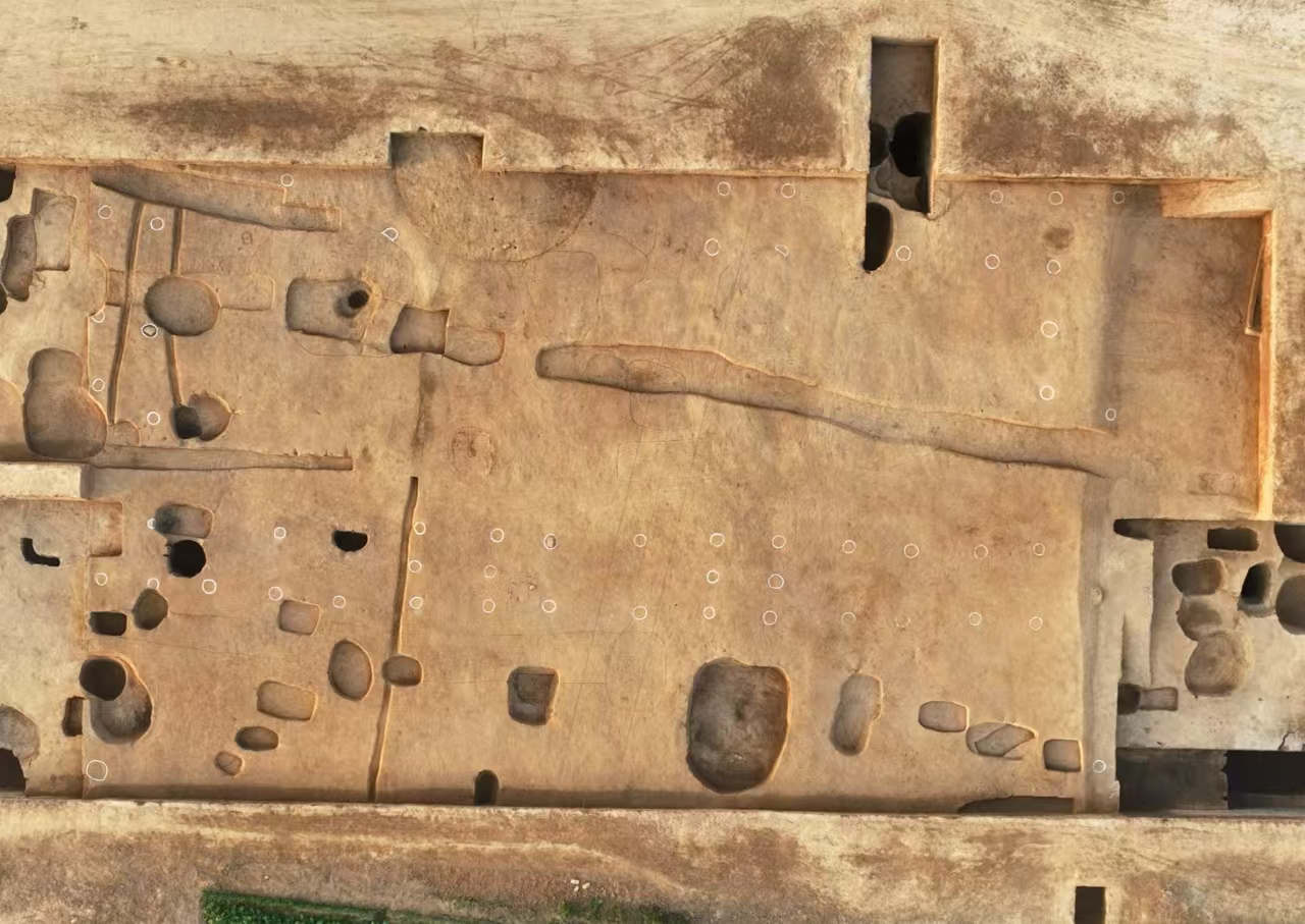 遗址内探明沟类遗存11处,宽8-12米,深2.5-3.7米,两侧5-8米的范围内多为空白区。这些沟类遗存纵横交错,规划有序,将南部区域分为相对完整的5个区块,呈现出与二里头遗址相似的“多网格”布局。
