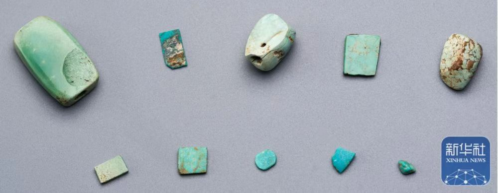 绿松石发现较多,主要以嵌片为主,饰品较少,另有少量的废料,说明遗址可能存在以加工绿松石嵌片为主的手工业。此外遗址还出土有玉柄形器、石钺、涂朱石人像、刻画符号等遗物,反映了八里桥遗址精神生活。