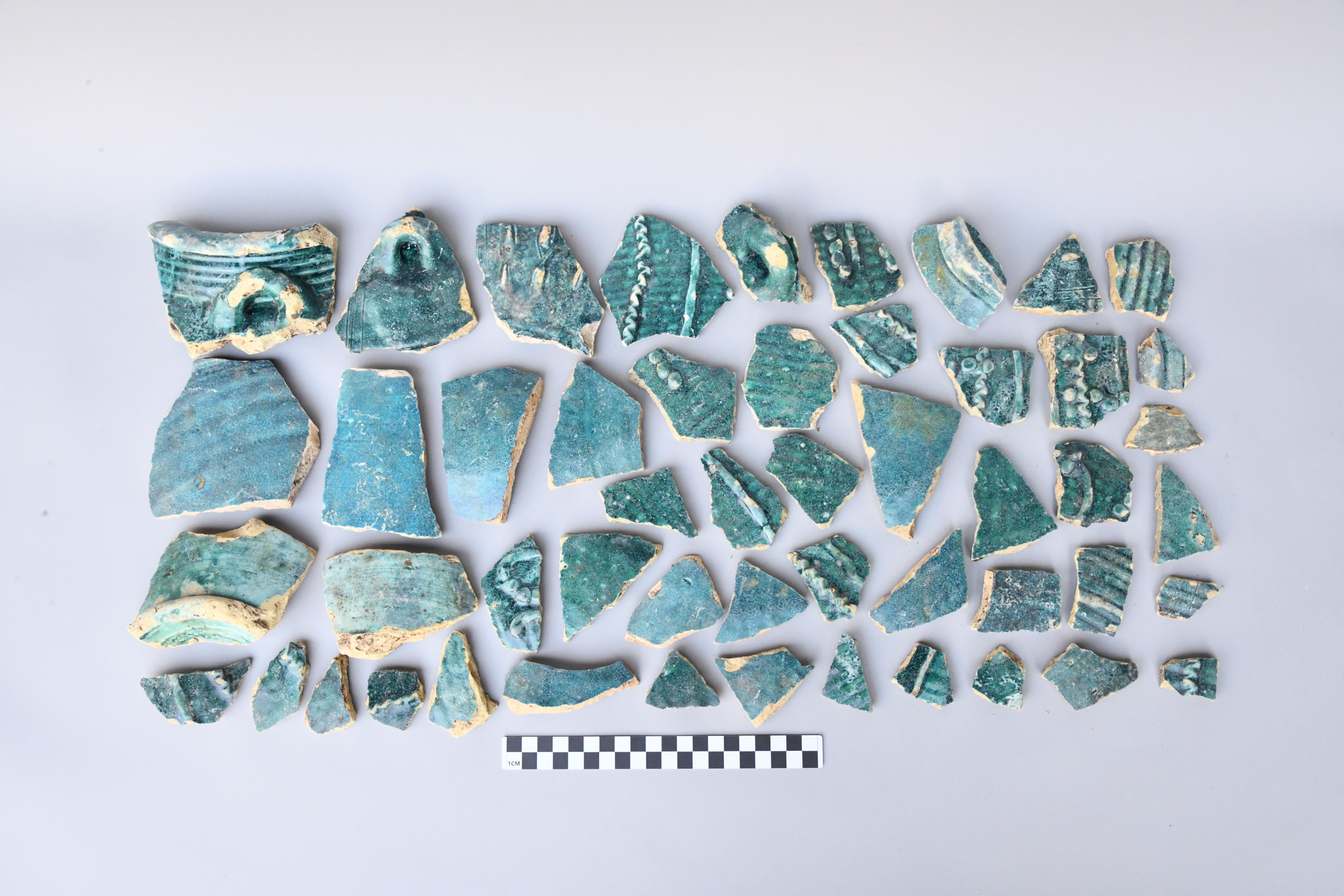 广州市越秀区光塔路茶树巷古城遗址出土的唐代波斯蓝釉陶片 广州市文物考古研究院供图