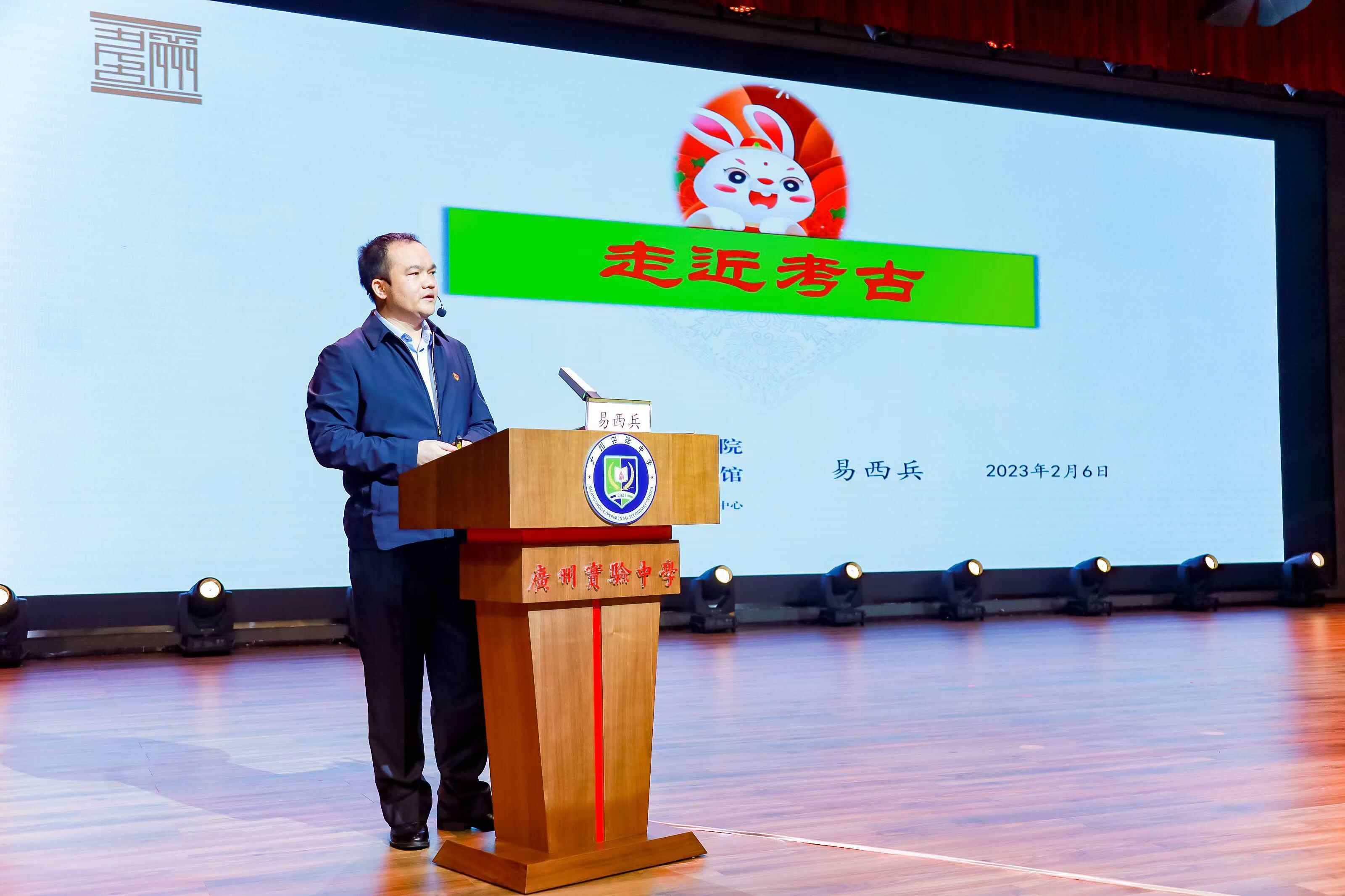 2月6日,2023春季学期开学第一天,广州实验中学的同学们迎来了一堂特别的“开学第一课”——由广州市文物考古研究院院长、南汉二陵博物馆馆长易西兵带来“走近考古”主题讲座。