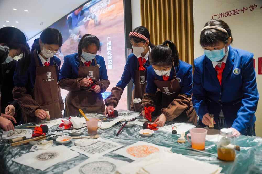 广州实验中学学生现场体验文物拓印