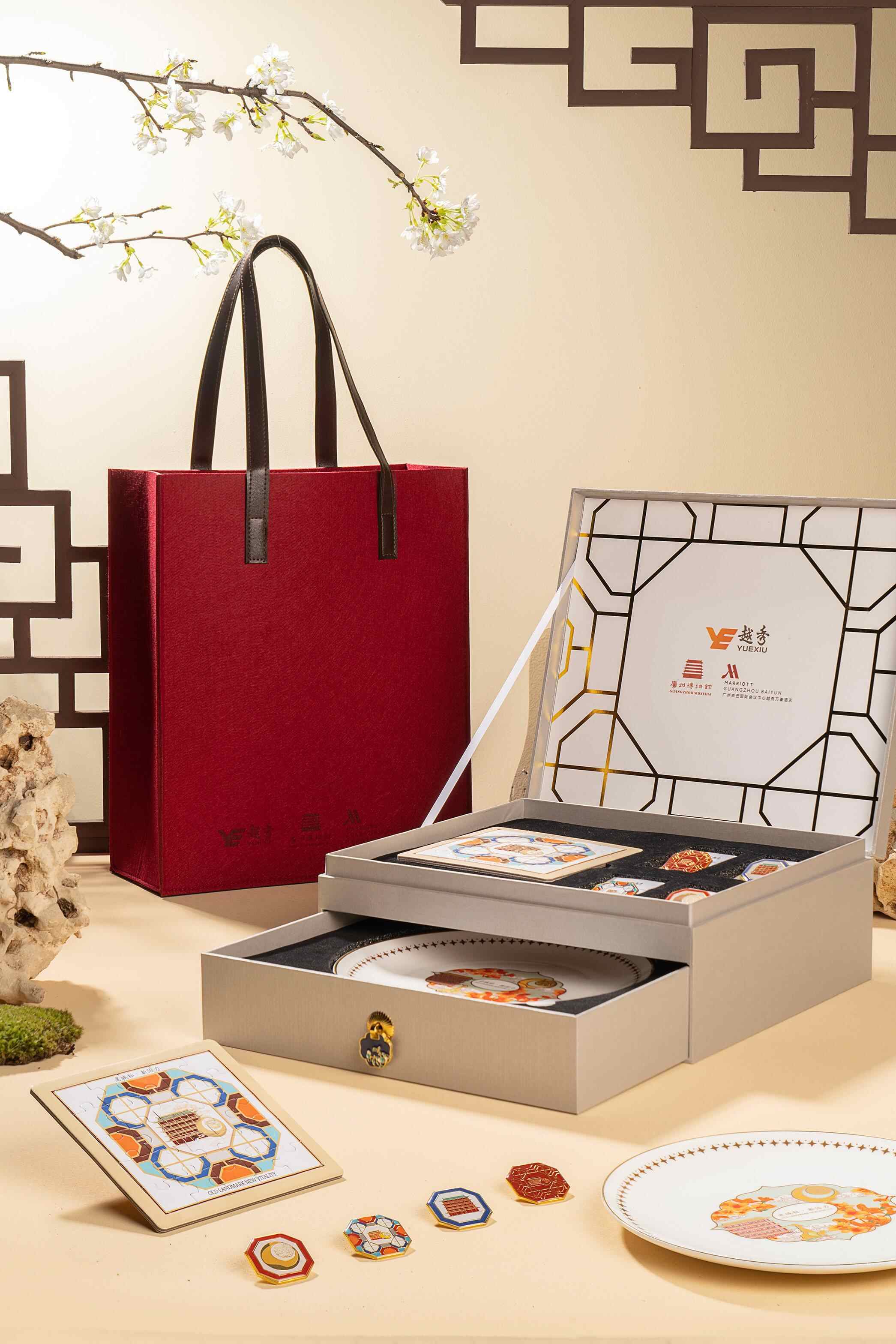 根据纹章瓷的文物特点,以广博主馆址镇海楼、广州白云越秀万豪酒店的标志雕塑“岭南云珠”等一系列元素打造出本次联名的徽章,并烧制到盛放下午茶的餐具上。宾客在享用美食之余,可以了解更多广彩文化。