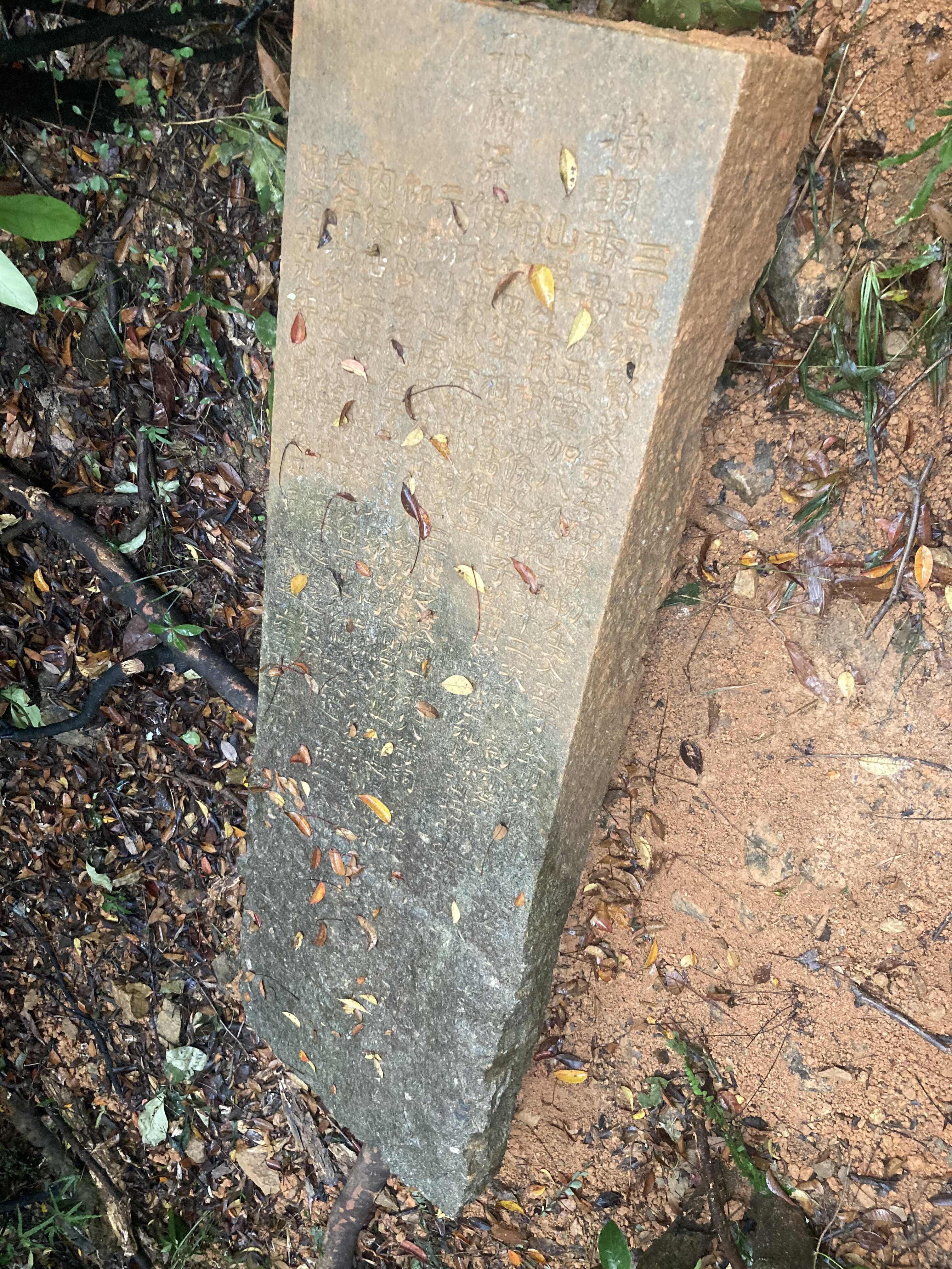在距离黄佐家族墓群不远的小路上,普查队员发现了一块清道光年间番禺县的禁令碑,碑文内容为禁止乡民毁坏墓葬,以及不准砍伐树木等。