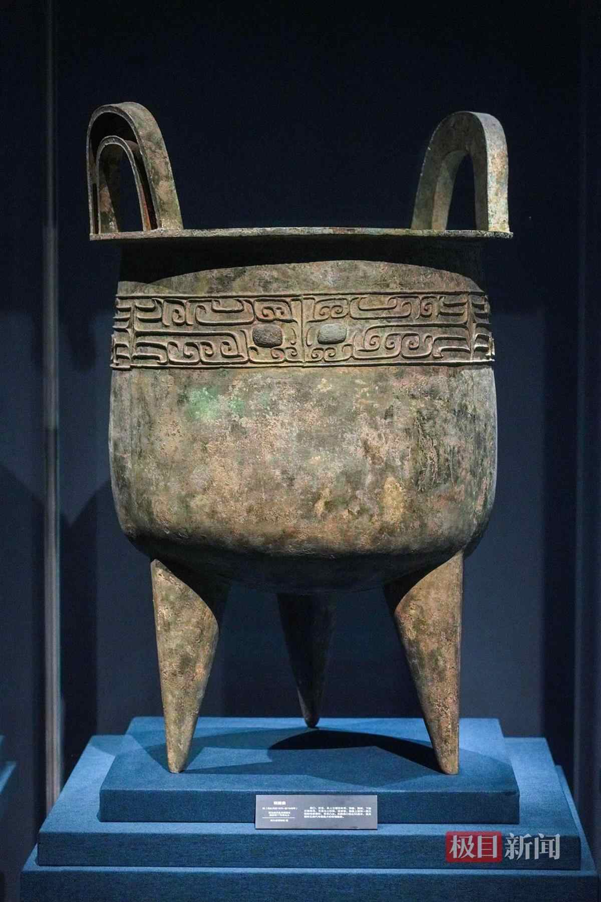 湖北武汉盘龙城遗址杨家湾11号墓出土、湖北省博物馆收藏的“铜圆鼎”,线条优美流畅,具有极佳的艺术观感。器腹上部饰一周三组阳线兽面纹,兽目凸出。此圆鼎口径达55厘米,是目前所见商代早期最大的青铜圆鼎。