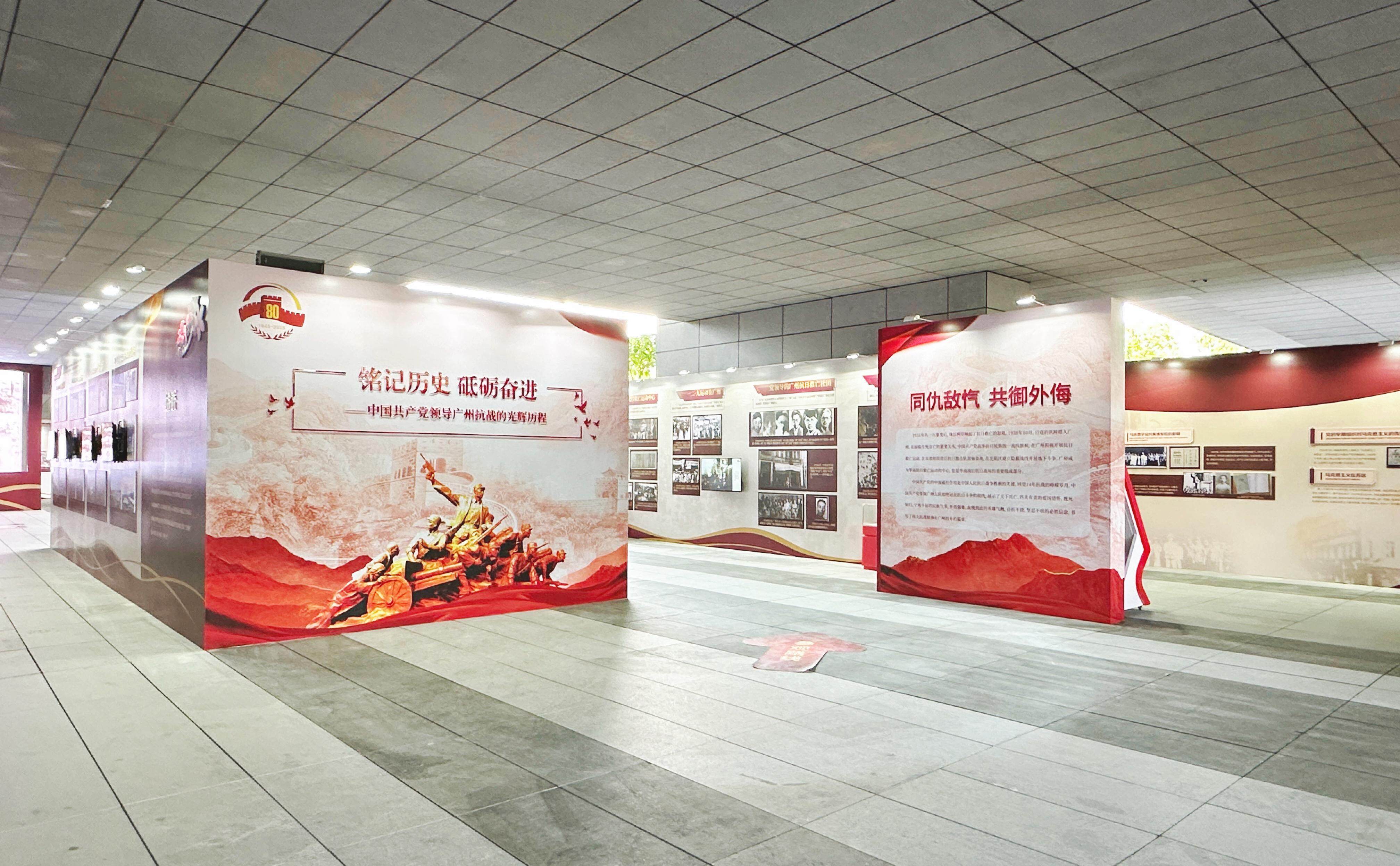 本次展览汇集图片160多幅,实物30余件,通过“奋起救亡”“深重灾难”“浴血奋战”“隐蔽战线”“笔墨刀锋”“正义必胜”六个部分,系统展示中国共产党领导广州抗战的壮阔历程;通过“发愤图强”“改革先行”“出新出彩”三个部分展现广州人民在党的领导下砥砺前行的奋斗历程。