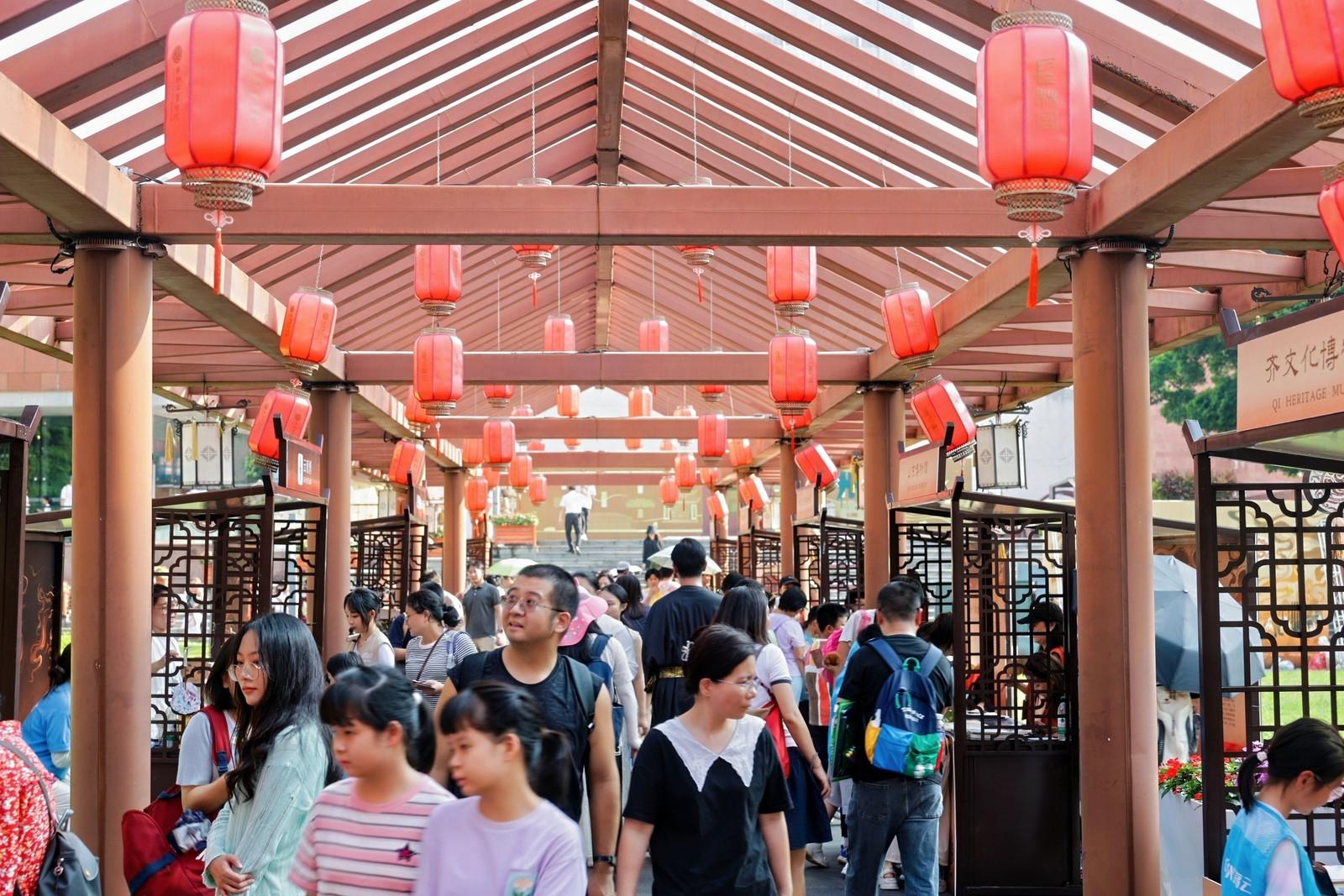 “考古小街”繁华再现,9家文博机构特色摊位齐聚王宫展区;“南越运动会”让观众亲身体验蹴鞠、投壶、锤丸等体育项目。