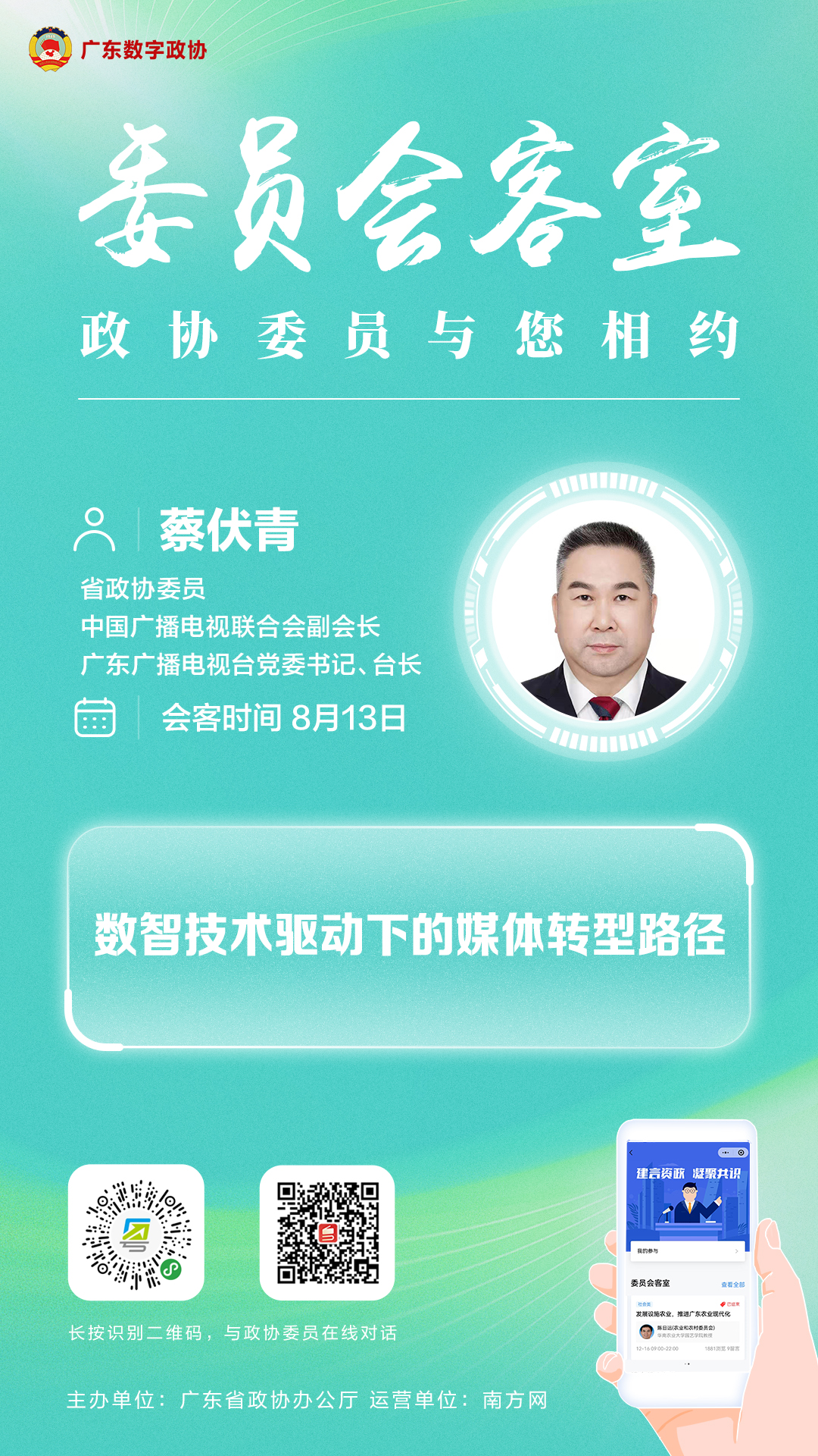 在数字化浪潮席卷全球的今天,数智技术以其强大的数据处理能力、智能算法和高效的信息传播特性,为媒体的内容生产、传播模式、用户体验和商业运营带来了颠覆性变革。从大数据精准洞察受众需求,到人工智能实现个性化内容推荐;从虚拟现实、增强现实技术打造沉浸式新闻体验,到5G网络赋能超高清实时传输,数智技术已深度渗透媒体生产全链路,持续推动行业转型升级。今天,省政协委员,中国广播电视联合会副会长,广东广播电视台党委书记、台长蔡伏青,与您聊聊“数智技术驱动下的媒体转型路径”这个话题。