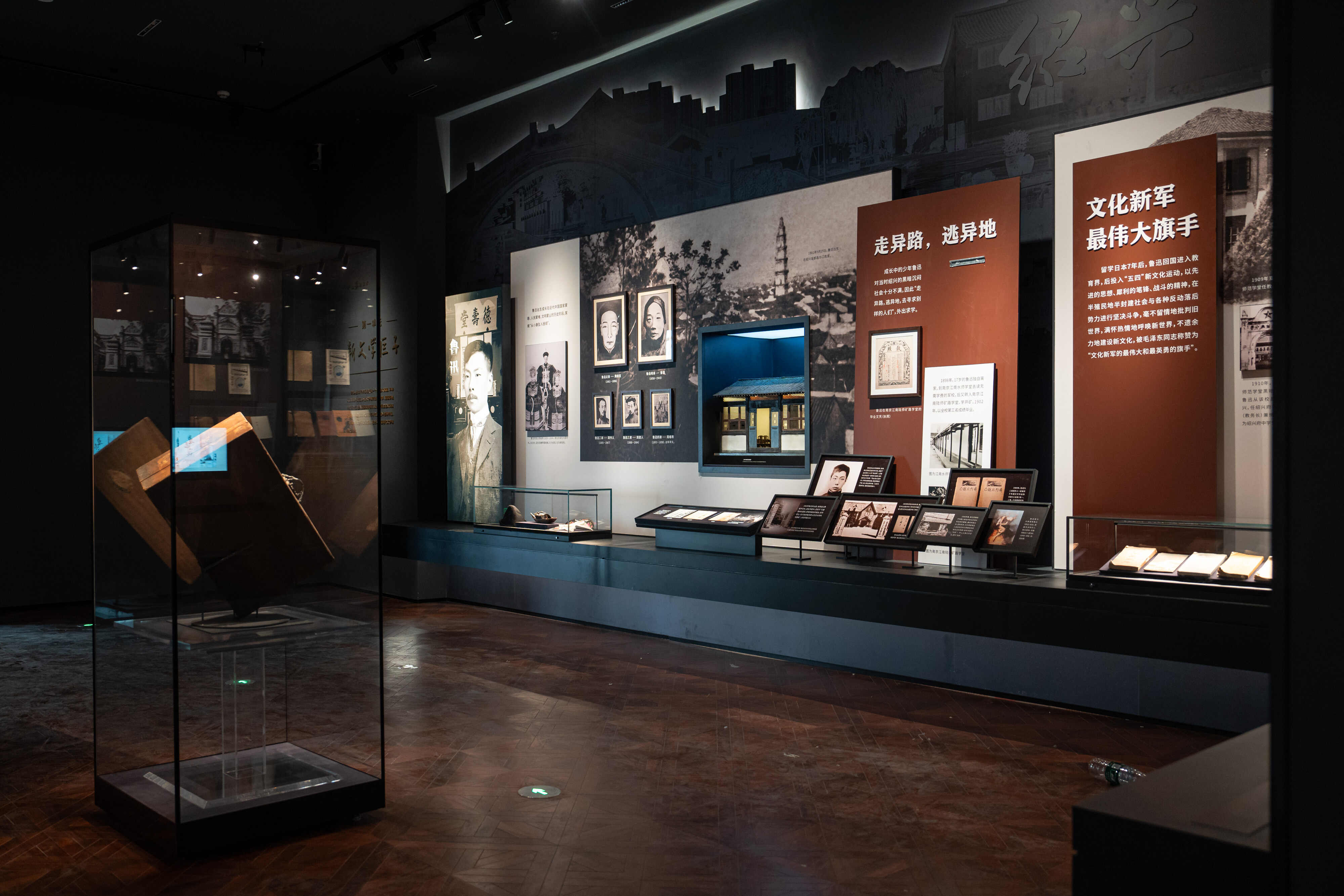 “破浪以飏:广东近代文学展厅”聚焦1840-1919年期间广东文学发展历史与成就,标题取自梁启超《二十世纪太平洋歌》,意指近代广东文学引领文界革命,展现出革新开放新气象。